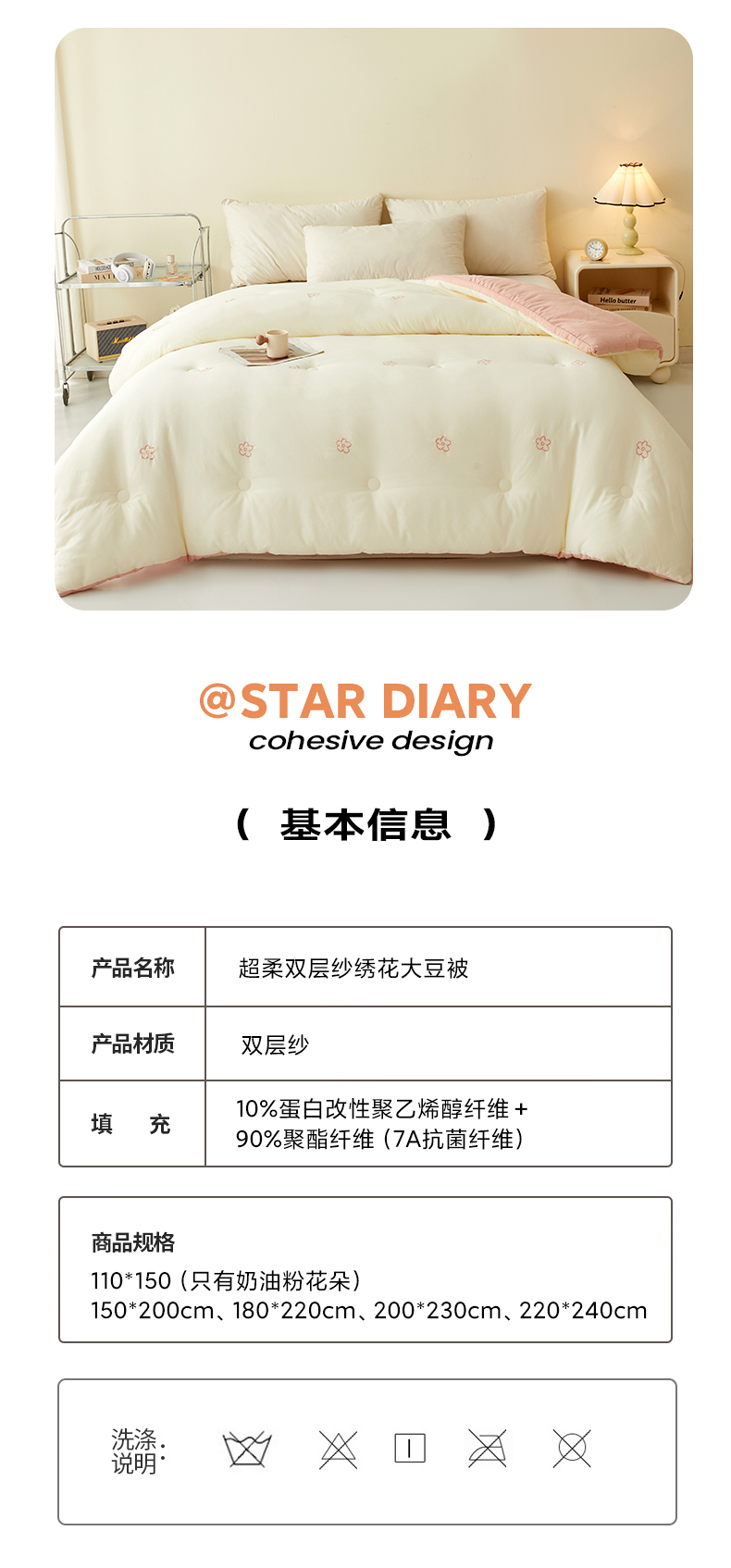 商品名称:(总)维洋家纺 2025新款双层纱云感刺绣大豆被被子被芯