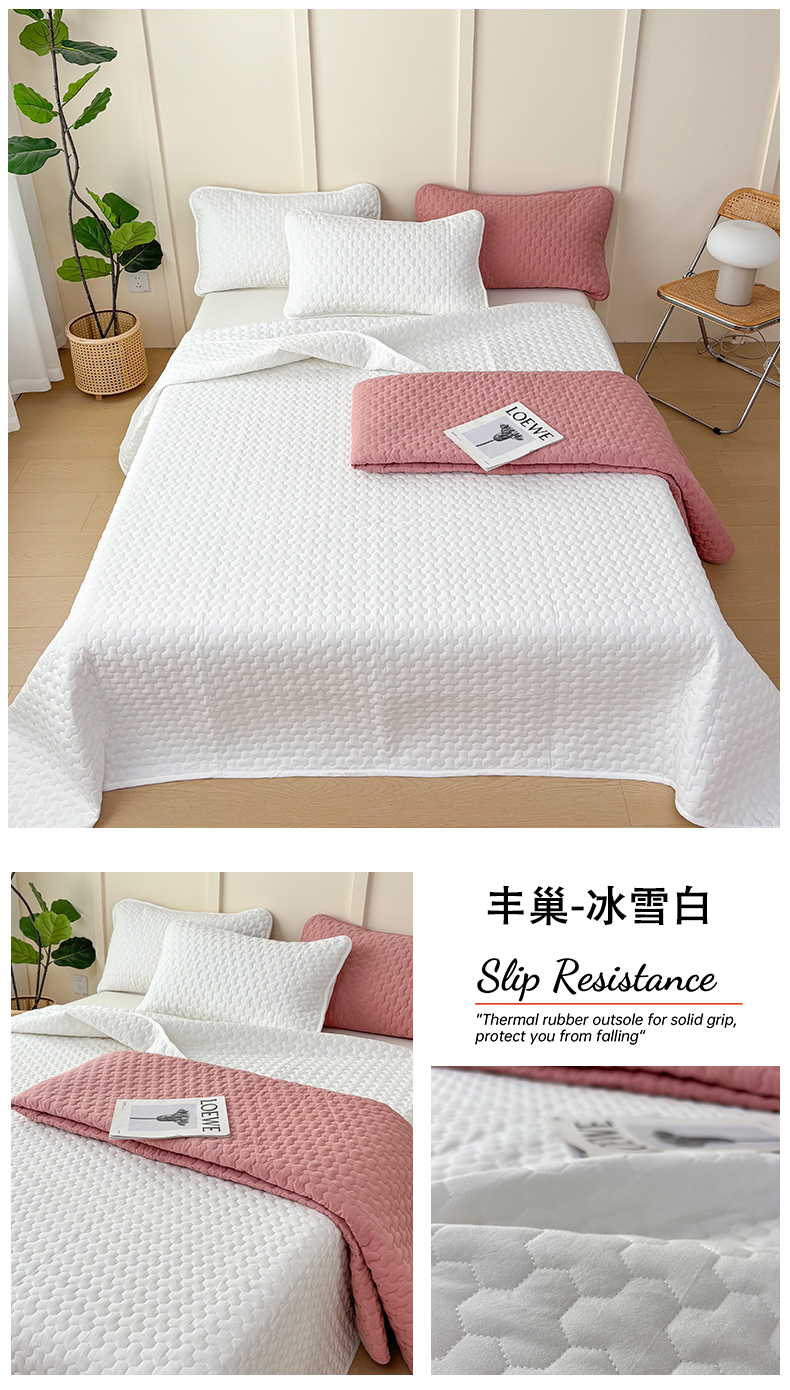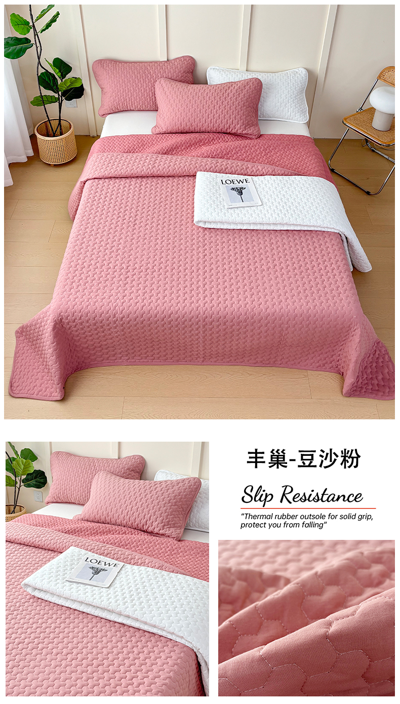 商品名称:八方汇(一户被芯生活馆) 2025新款纯色全棉色织夹棉床盖 米妮-豆沙粉