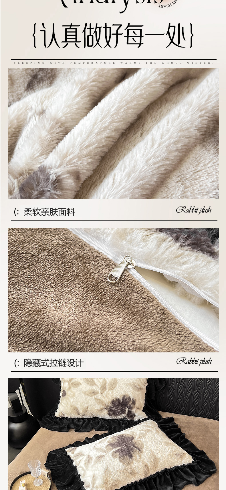 商品名称:创爱家纺 2025新款法式韩版花边兔毛绒印花四件套 法式花边-若汐