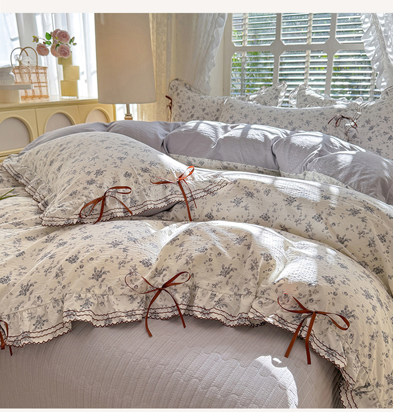韩约家纺 2025新款韩约1韩式蝴蝶结床盖款棉麻四件套 波波兰
