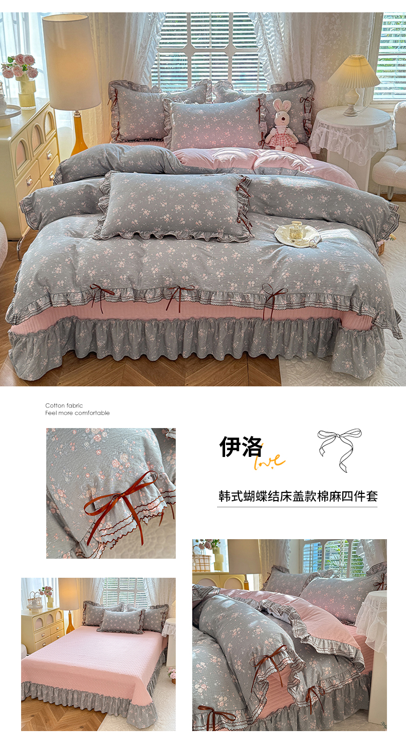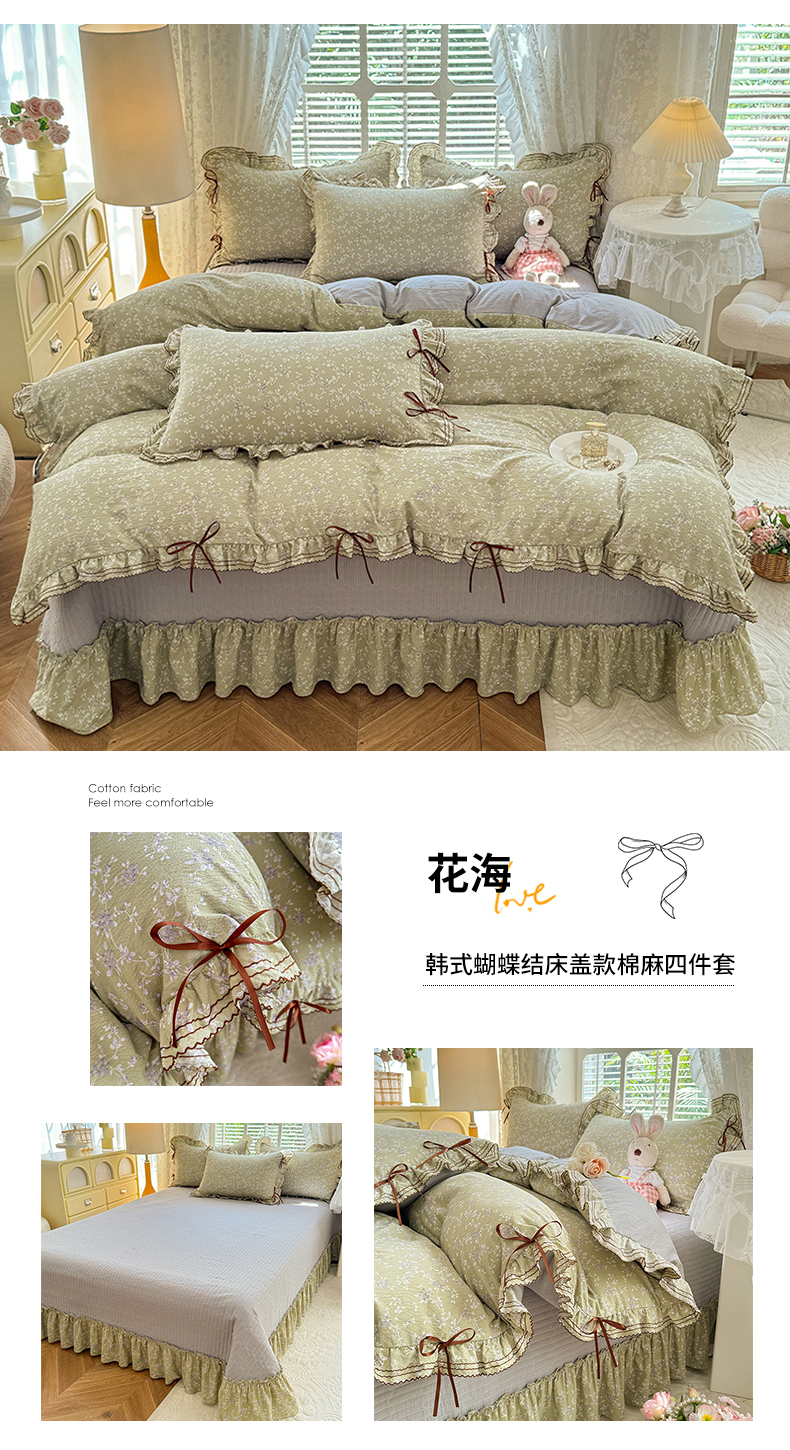 商品名称:韩约家纺 2025新款韩约1韩式蝴蝶结床盖款棉麻四件套 波波兰