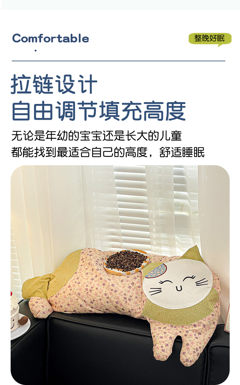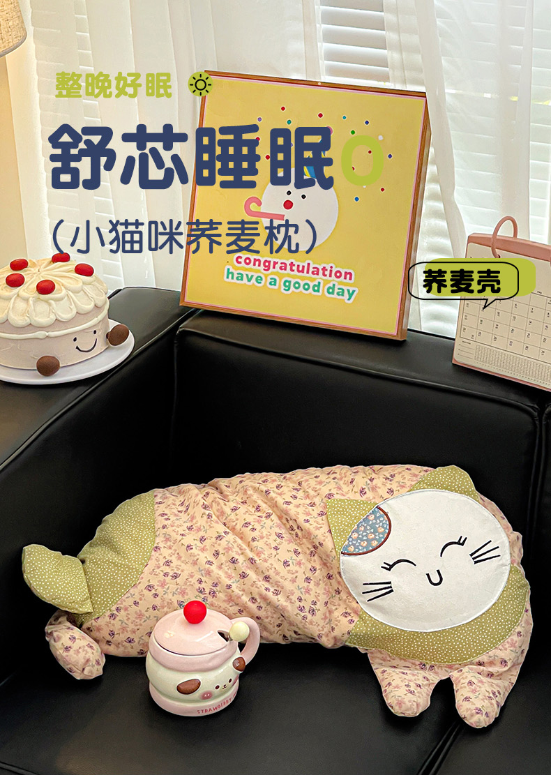 商品名称:亦帆枕芯 2025新款全棉纯棉卡通可爱猫咪可拆洗全棉护颈荞麦枕枕头枕芯 棕色-全棉可爱猫