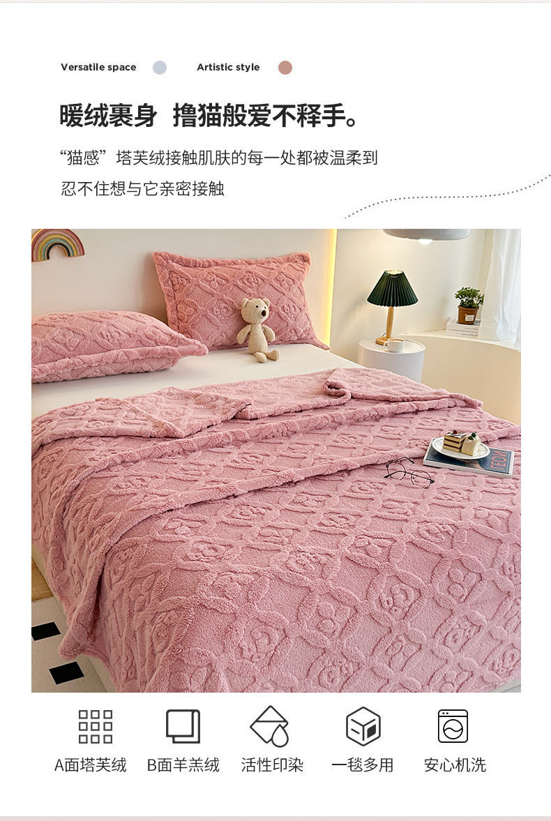 商品名称:栩裕纺织 2025新款塔芙绒三叶草提花毛毯-卷边款 深灰