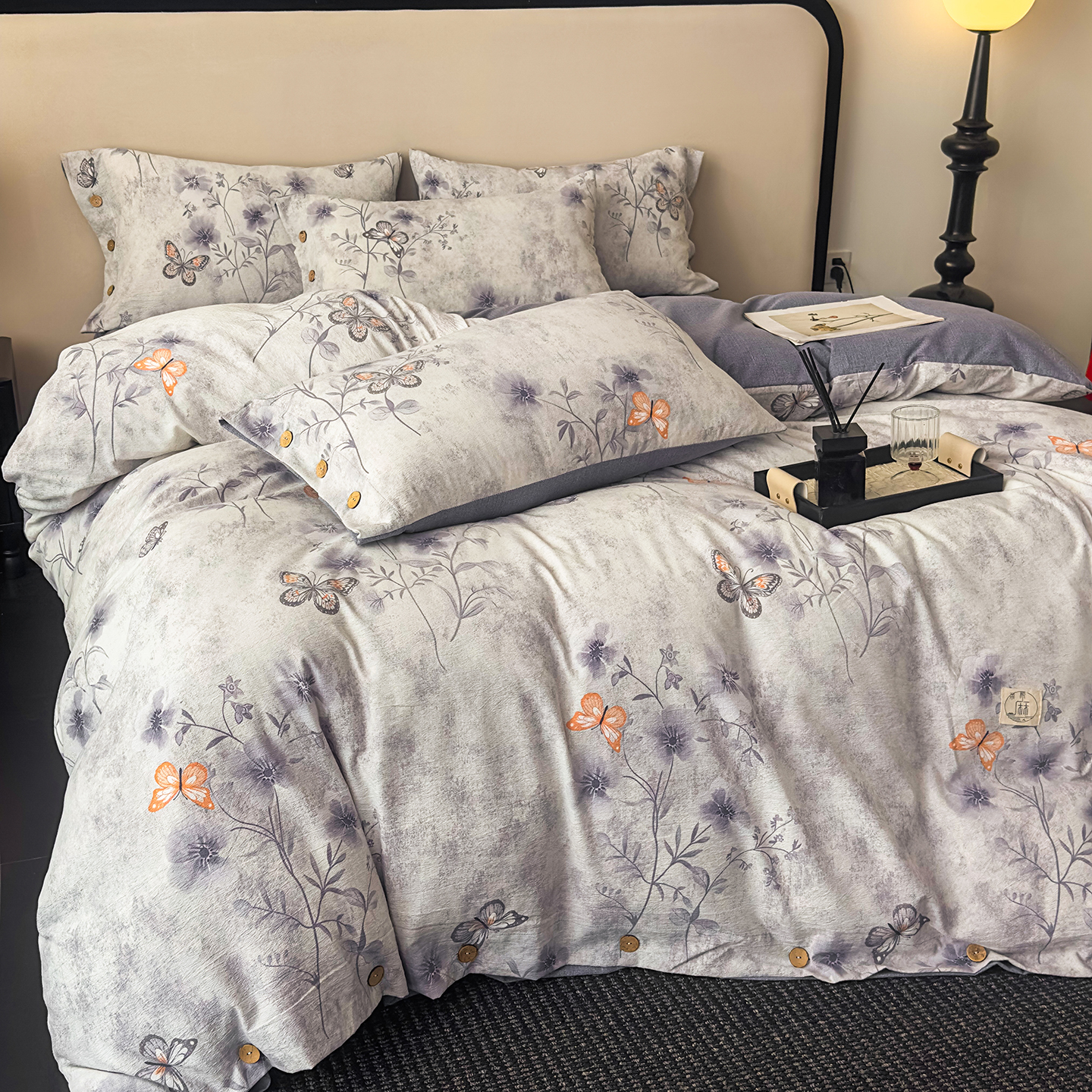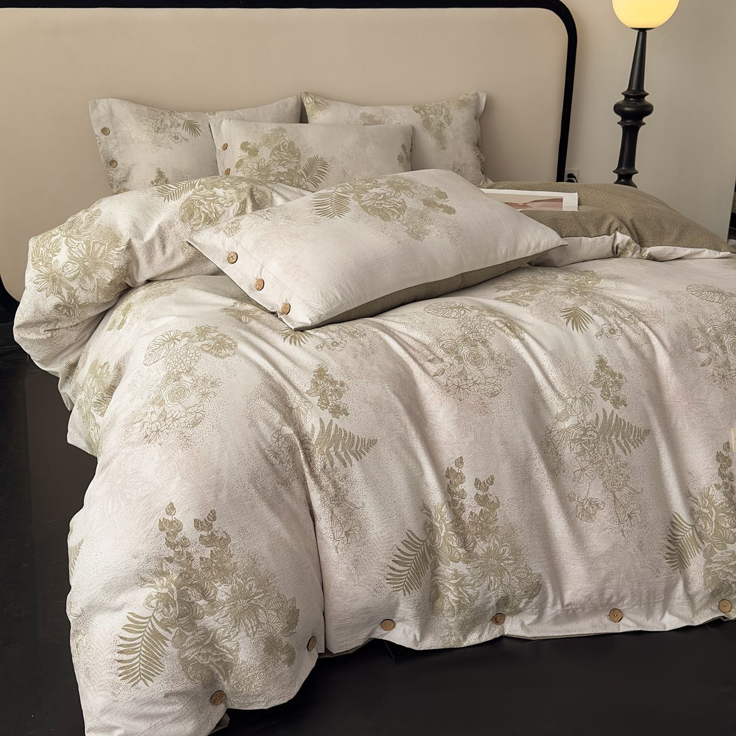 禧多家纺 2025新款提花原柔麻四件套纽扣款 观云