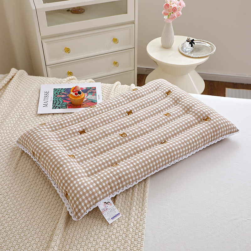 卓昌枕芯 2025新款定型蕾丝磨毛花边枕枕头枕芯 小熊-咖色