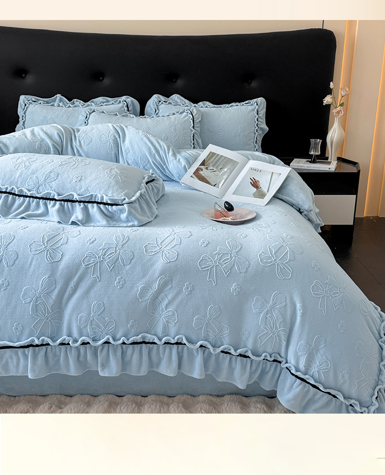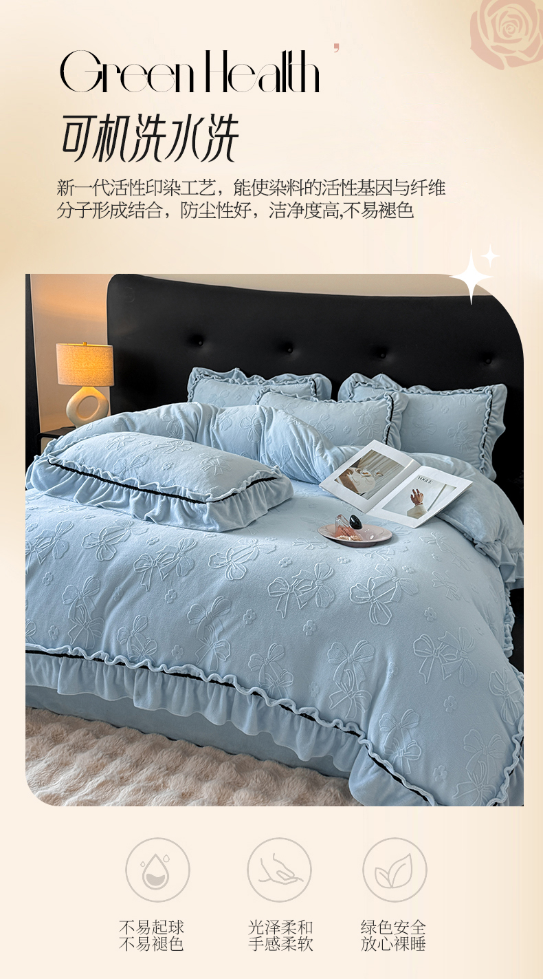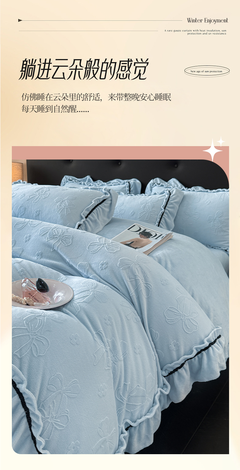 绘萱家居 2025新款新品爆款高密消光织带花边款雕花牛奶绒四件套 薇薇安-兰
