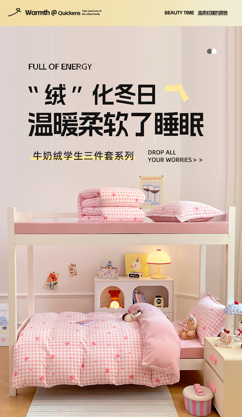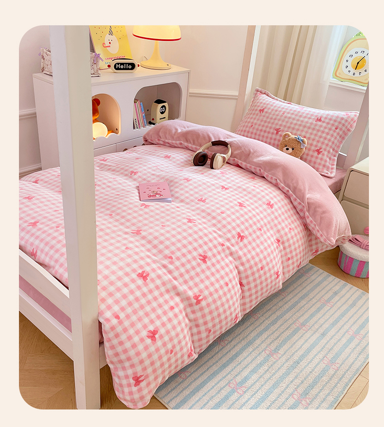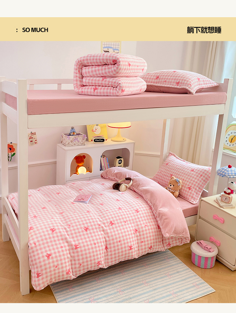 当前位置: 91家纺网 > 商品网购 > 床品套件 > 三件套 > 锦润家纺 2025新款亲肤舒适牛奶绒三件套学生三件套上下铺三件套宿舍三件套 格子蝴蝶结