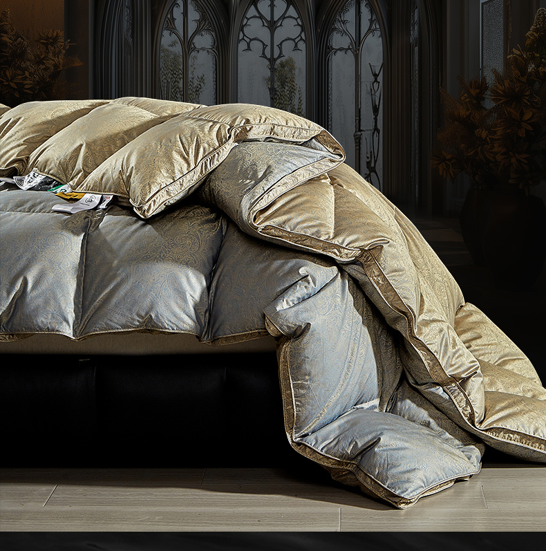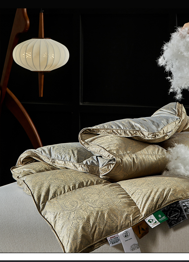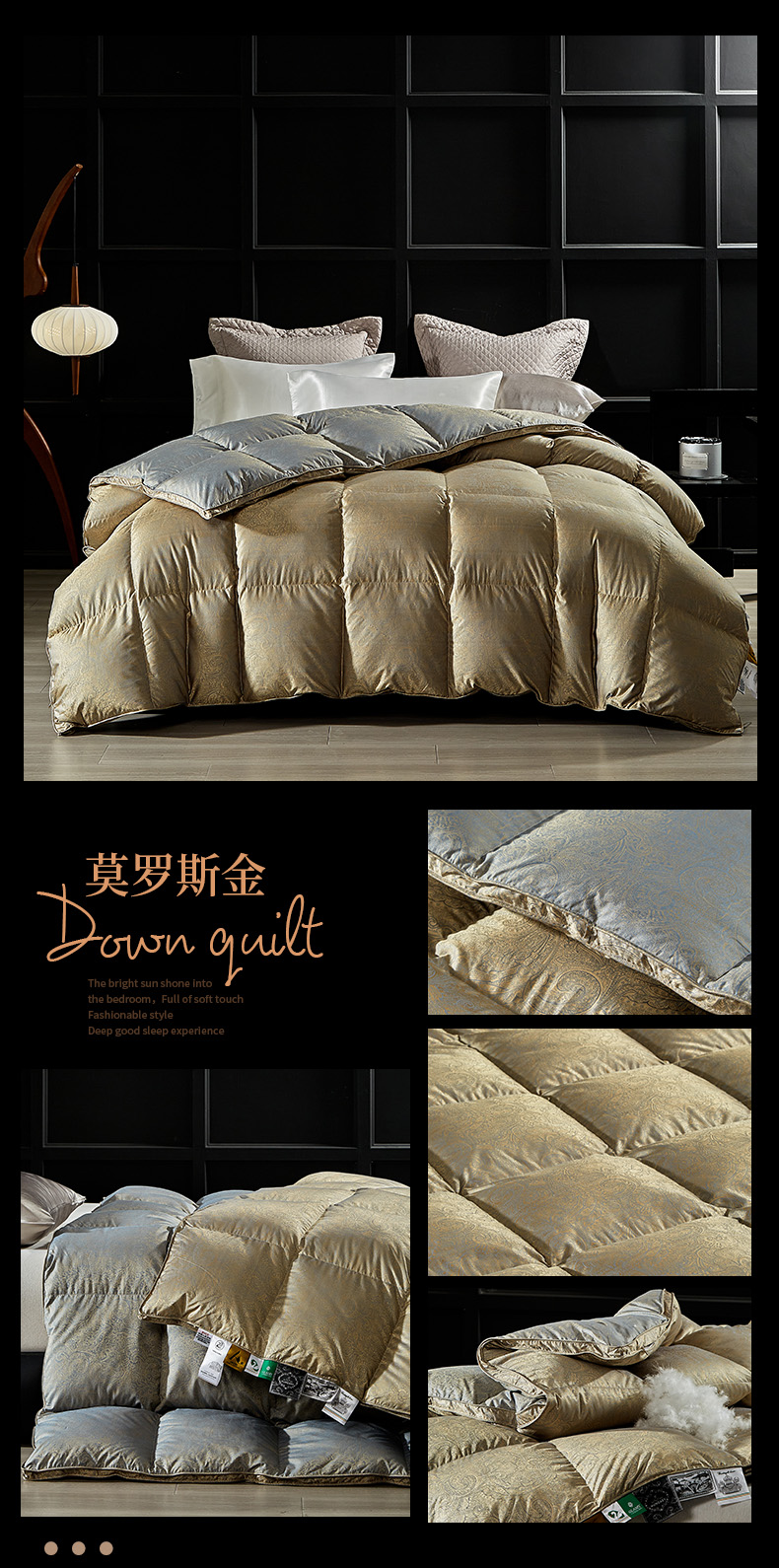 (总)暖羽屋羽绒馆 2025新款白鹅绒丝被芯 羽绒丝被 羽毛被子 婚庆羽绒被 双人加厚冬被,恒运莱 金-角度一,恒运莱 金-角度二