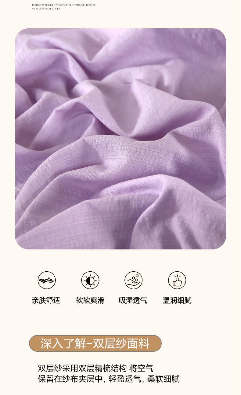 一诺家居 2025新款A类云感双层纱纯色床笠针织棉母婴级裸睡床笠三件套 量大可优惠 熏衣紫