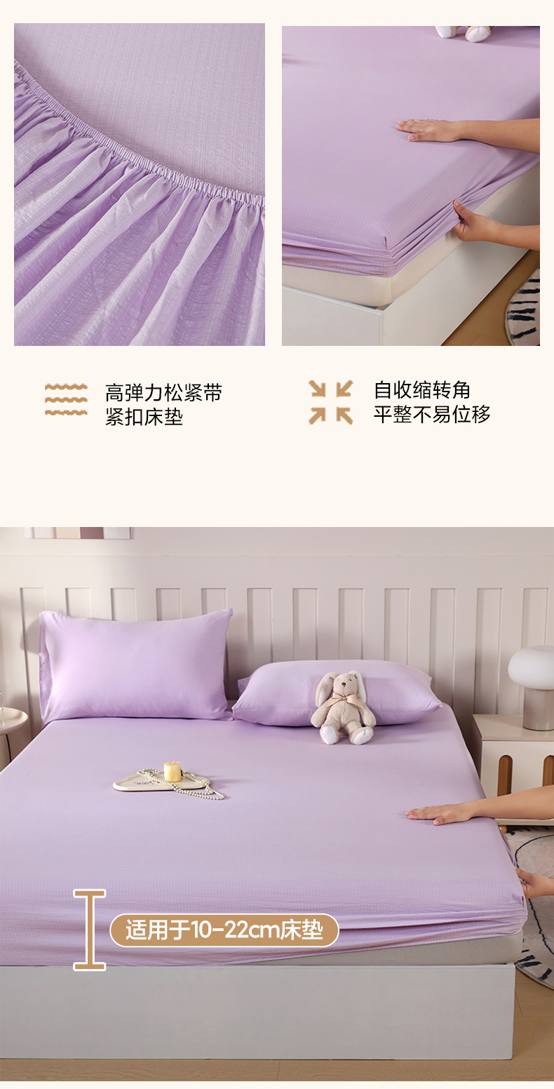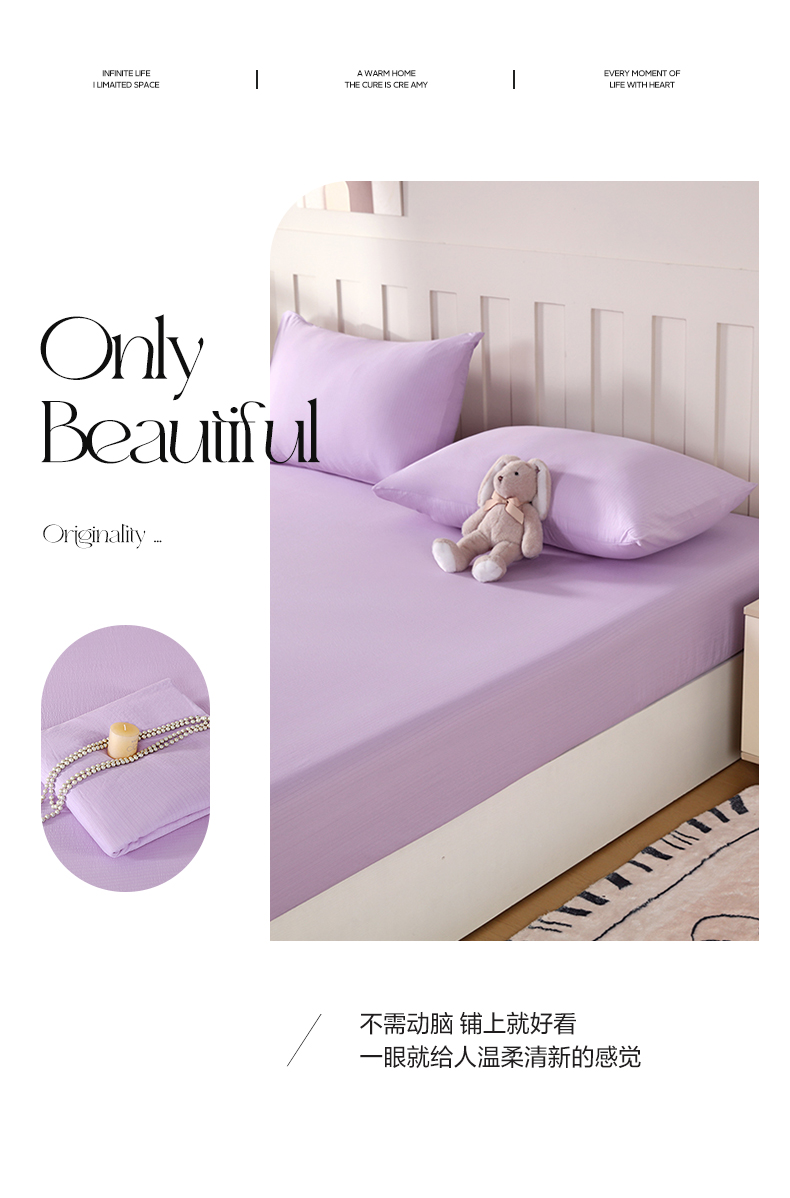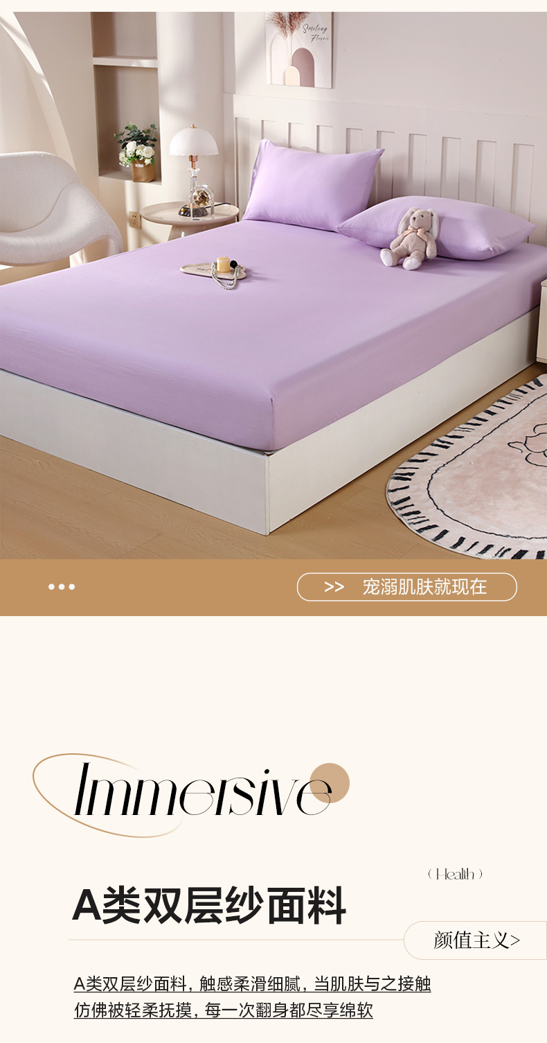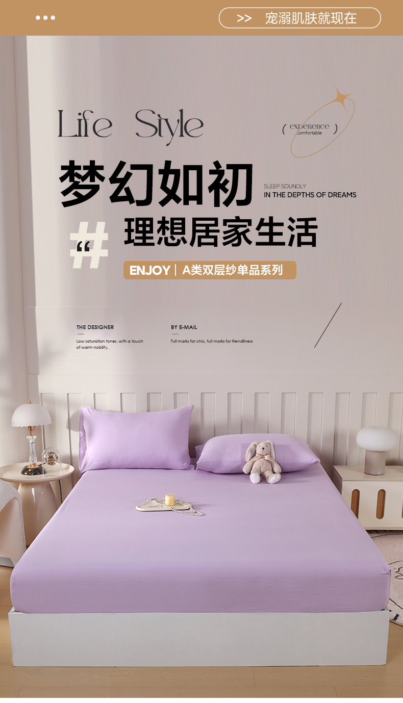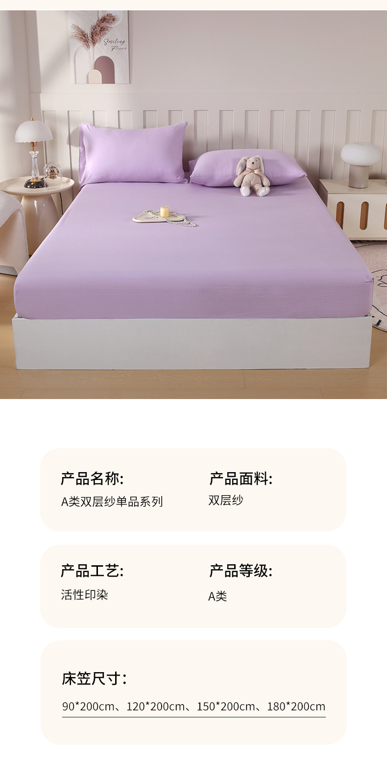 • 91家纺网 家纺一手货源 找家纺 一诺家居 2025新款A类云感双层纱纯色床笠针织棉母婴级裸睡床笠三件套 量大可优惠 熏衣紫
