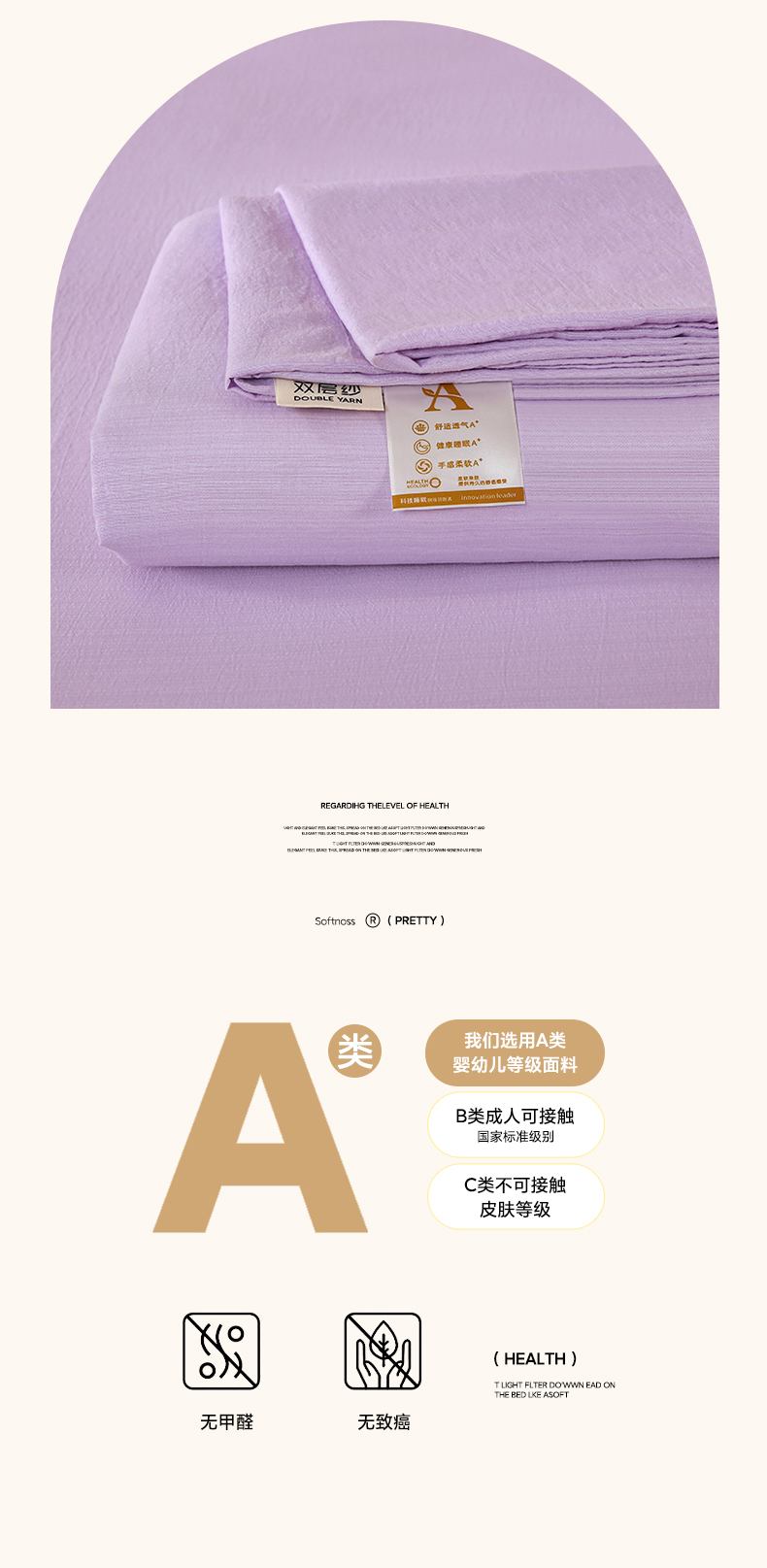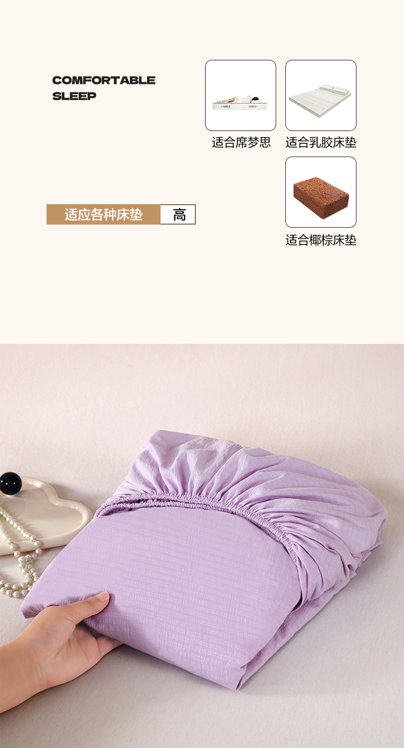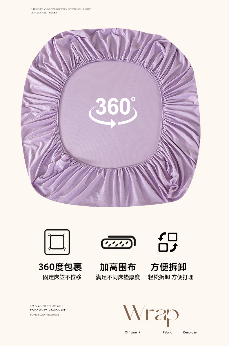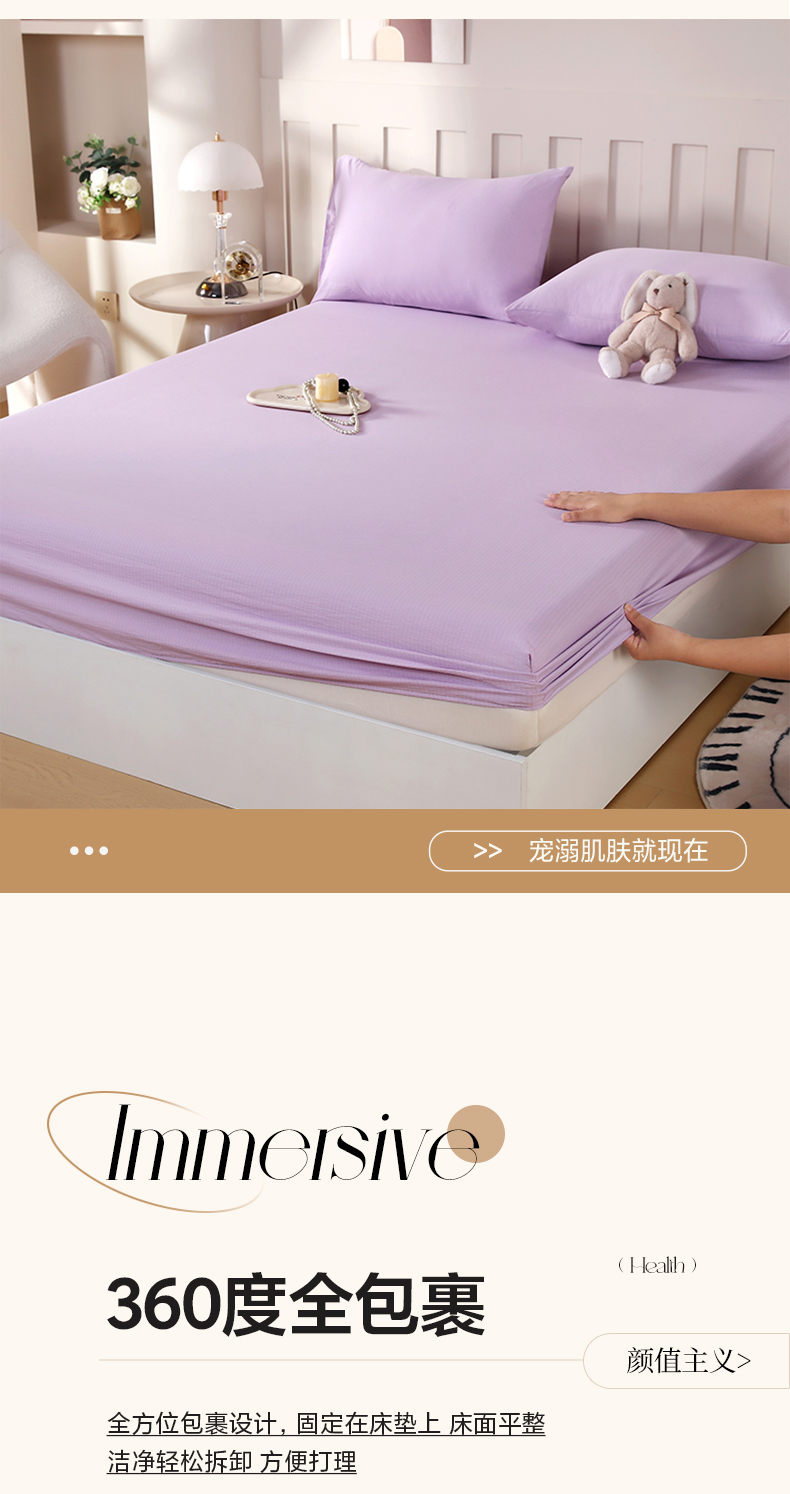 • 91家纺网 家纺一手货源 找家纺 一诺家居 2025新款A类云感双层纱纯色床笠针织棉母婴级裸睡床笠三件套 量大可优惠 熏衣紫