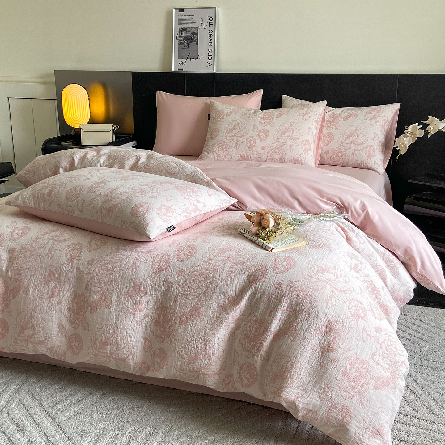 (总)宜代光年 2026新款60S水洗棉全棉纯棉三层纱色织提花夏被四件套系列,繁花-粉,繁花-灰,繁花-咖,繁花-绿,繁花-紫,海棠,林逾静-灰,林逾静-橘,牡丹-粉,牡丹-咖,执笔水墨-灰,执笔水墨-咖