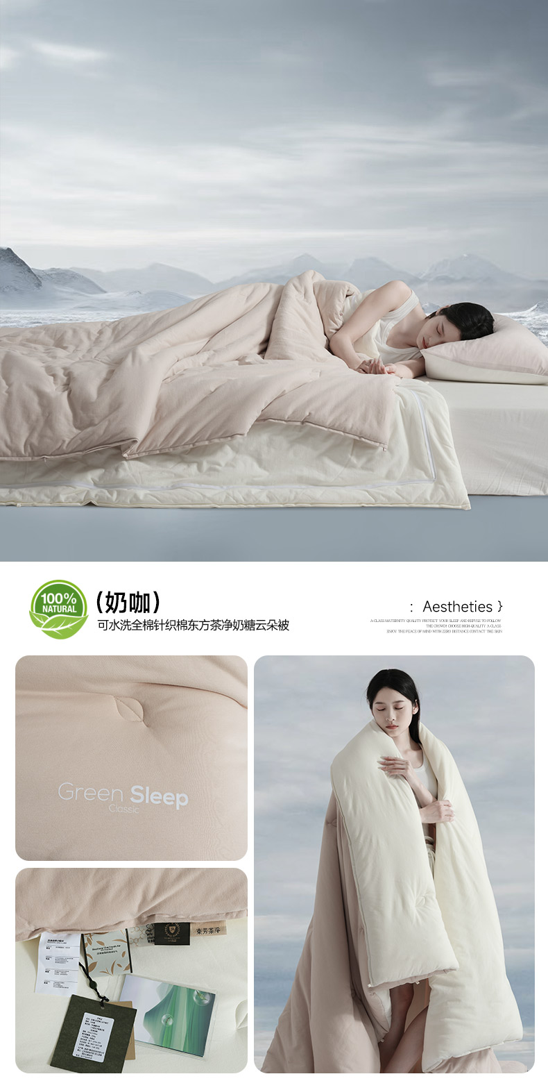• 91家纺网 家纺一手货源 找家纺 桂雅居 2025新款可水洗全棉针织棉东方茶净奶糖云朵被被子被芯 星空蓝