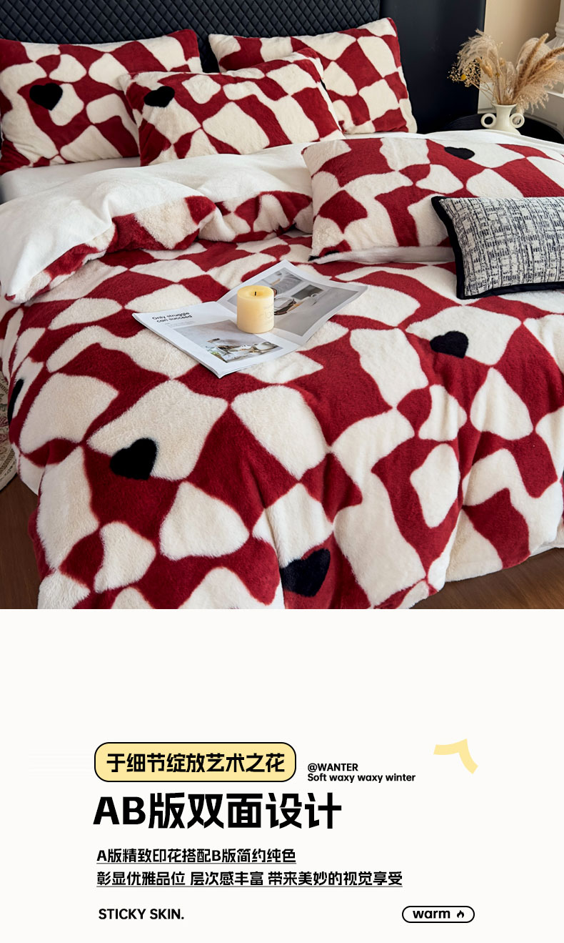 当前位置: 91家纺网 > 商品网购 > 床品套件 > 四件套 > 其它四件套 > 璐维斯 2025 A类舒适兔毛绒印花四件套卡通花卉牛奶绒秋冬保暖床上用品单被套三件套 红色棋盘格
