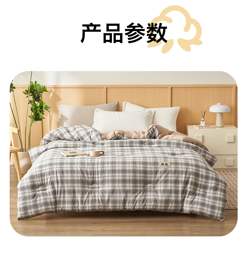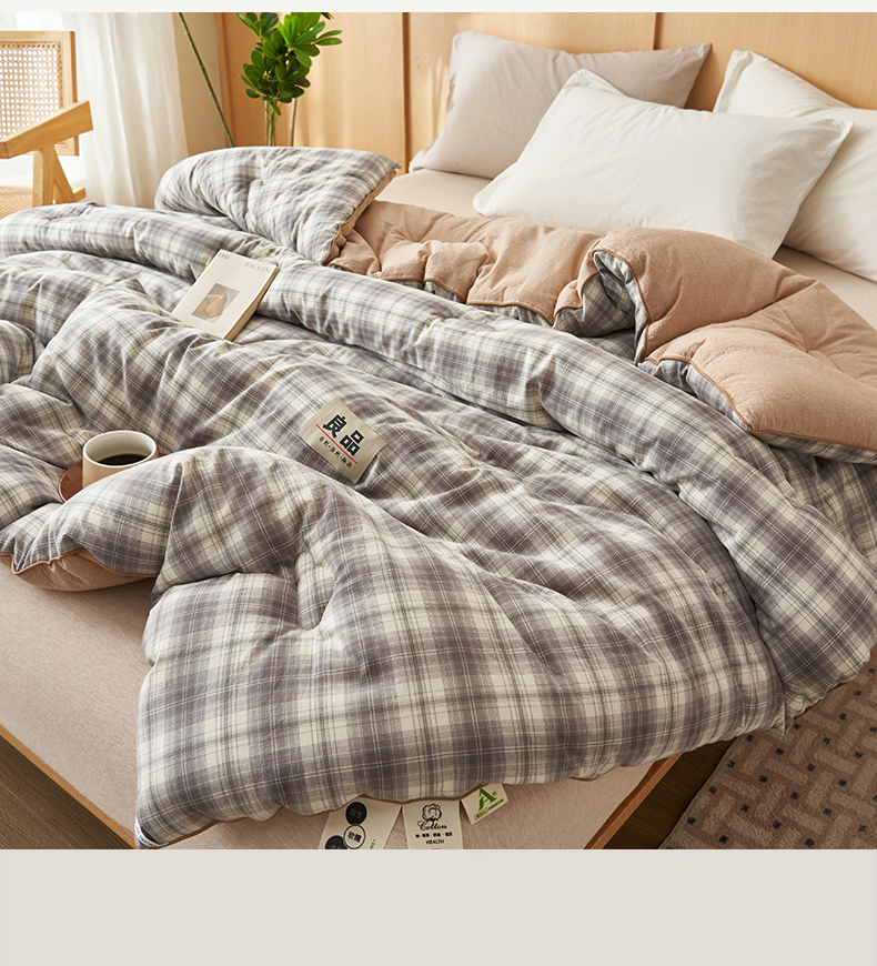商品名称:趣色家纺 2025新款色织格子里外全棉纯棉棉花冬被被子被芯 绅士灰
