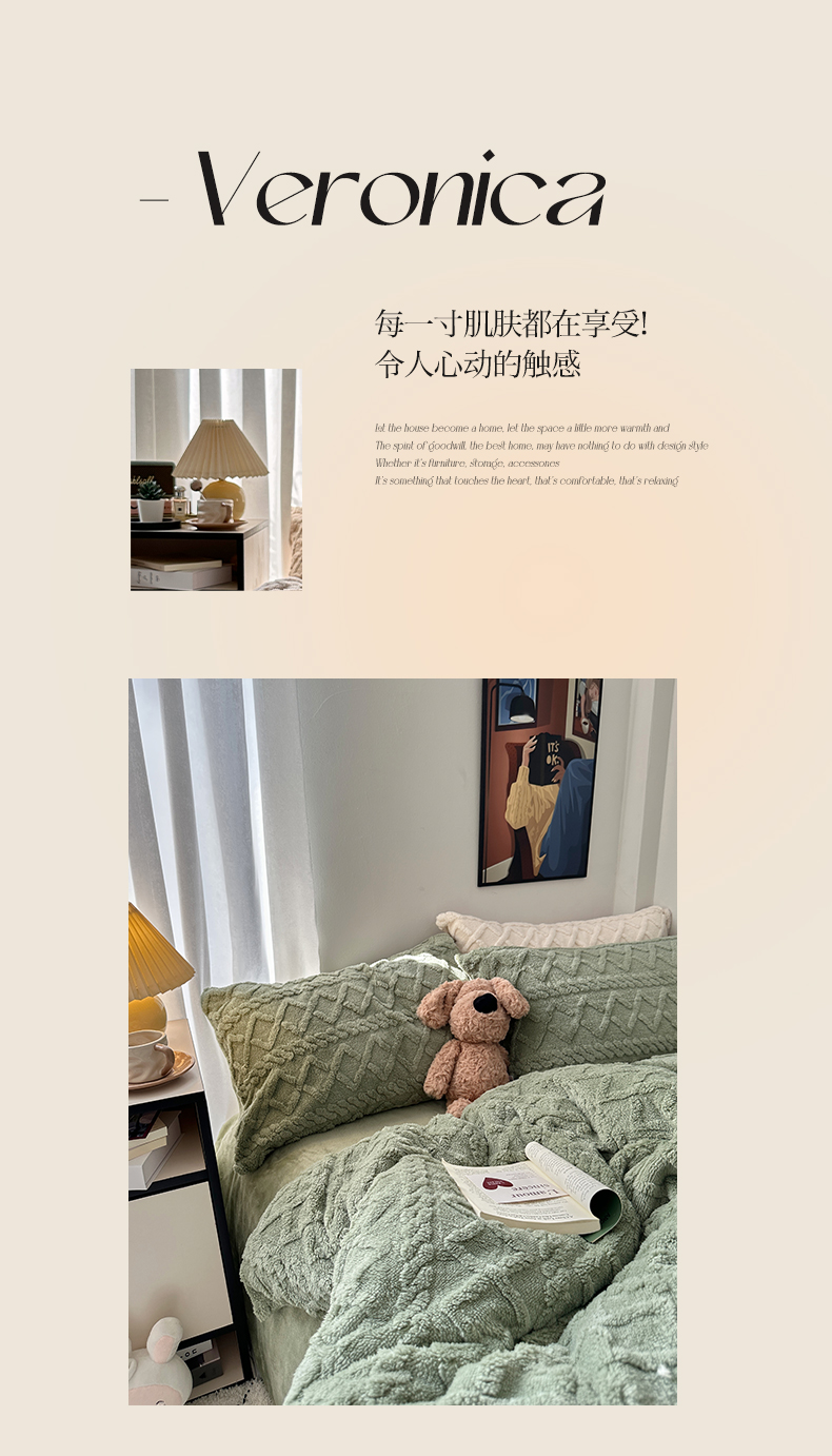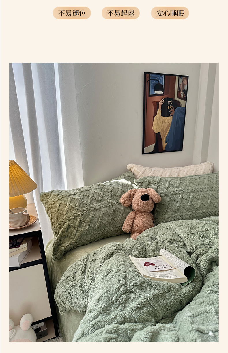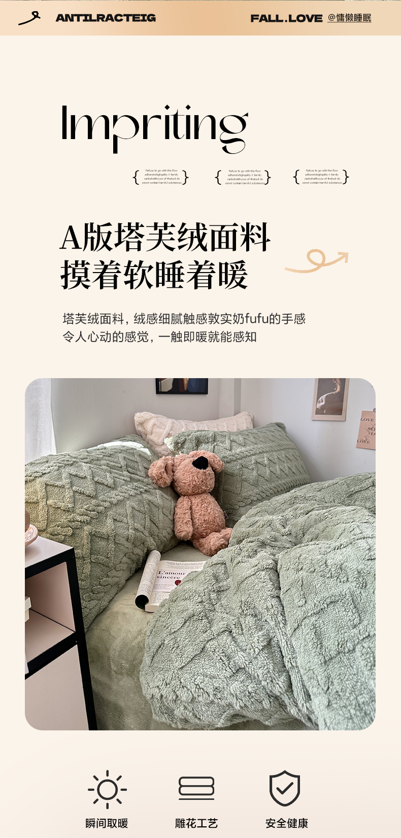 艾咪-Amy ntmy 2025新款治愈系少女风塔芙绒牛奶绒四件套 抹茶