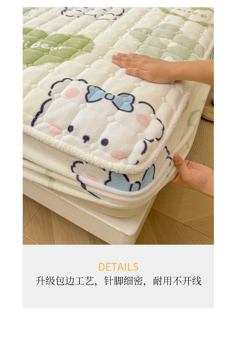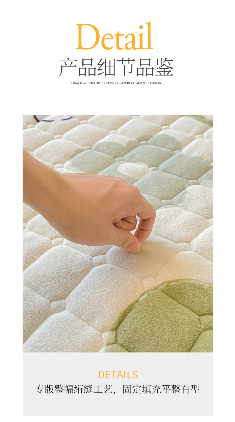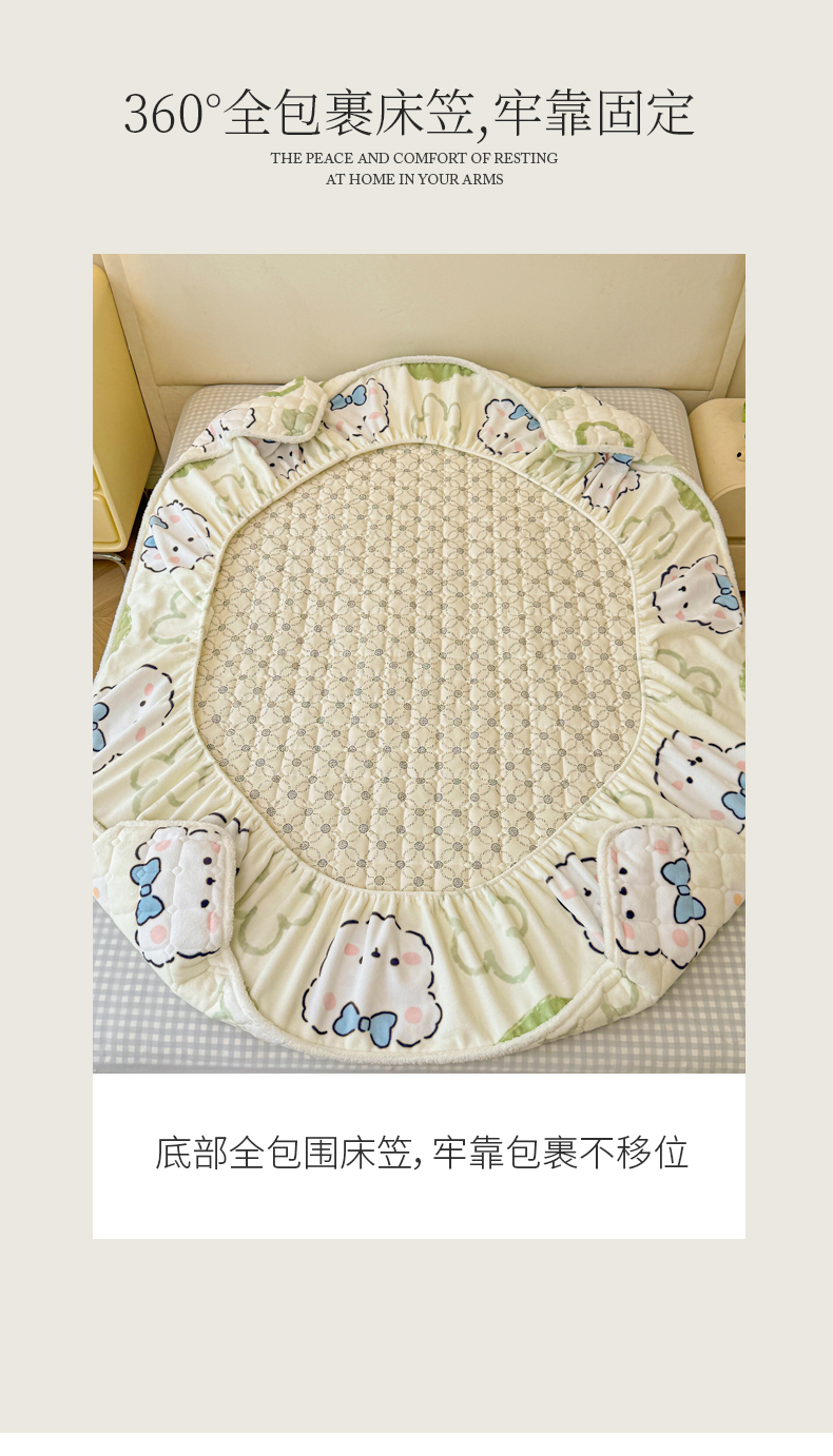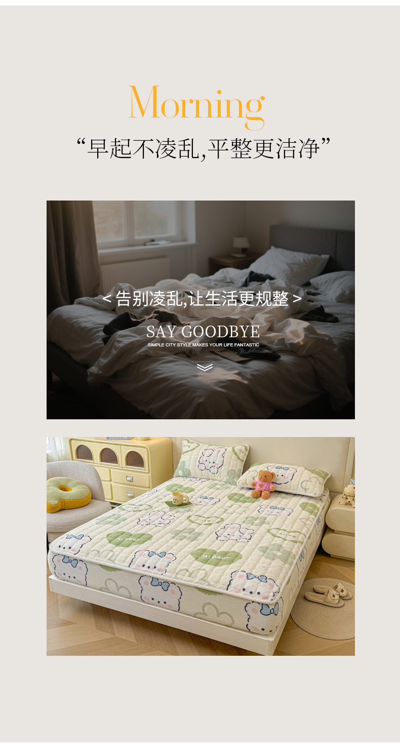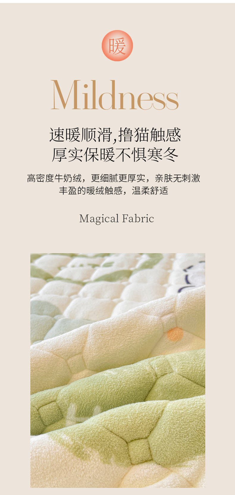 • 91家纺网 家纺一手货源 找家纺 LIFE.丽芙 2025秋冬新款牛奶绒加厚夹棉单床笠印花款床垫子保护套秋冬保暖床罩子三件套 爱心小宠-绿