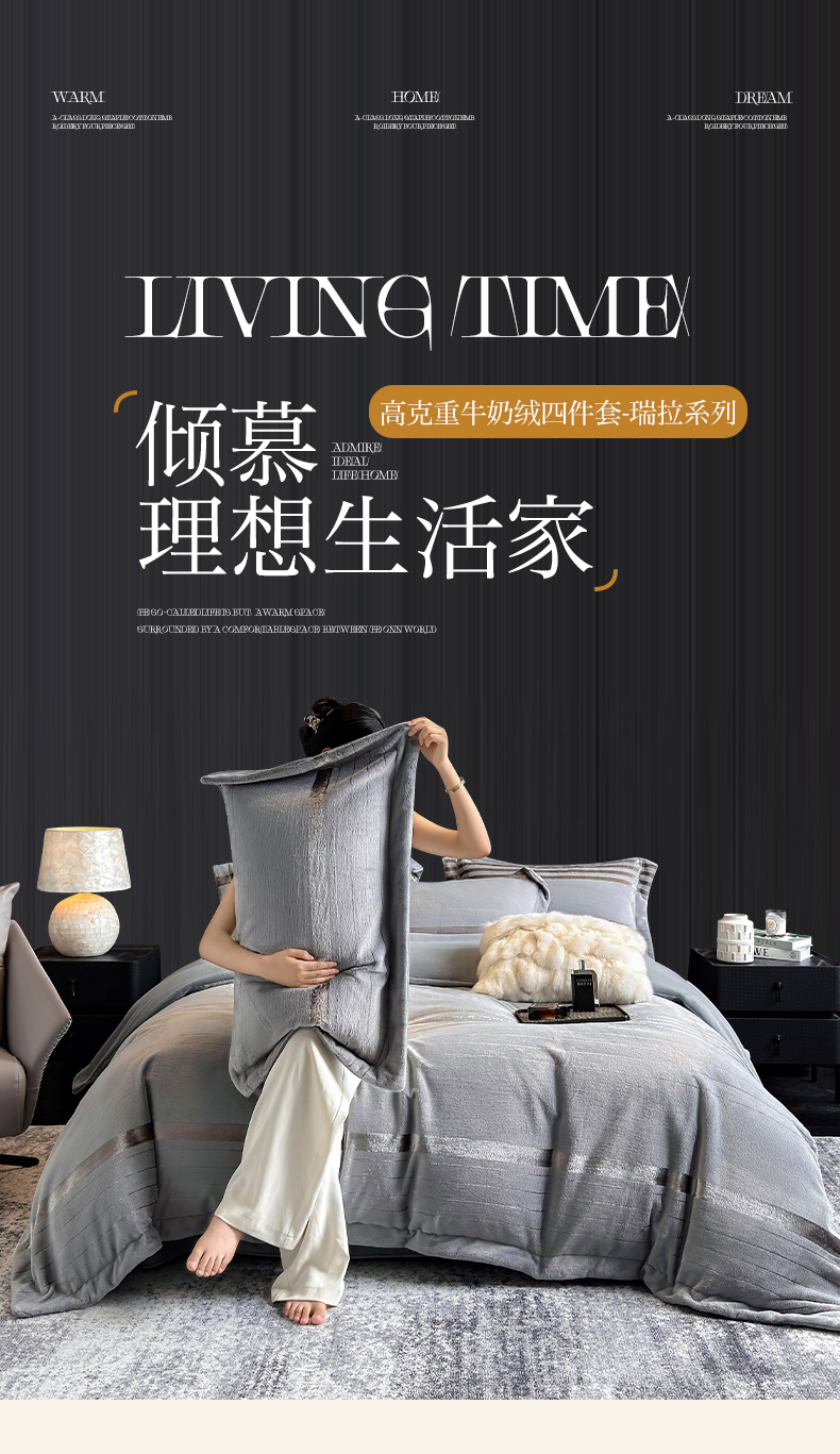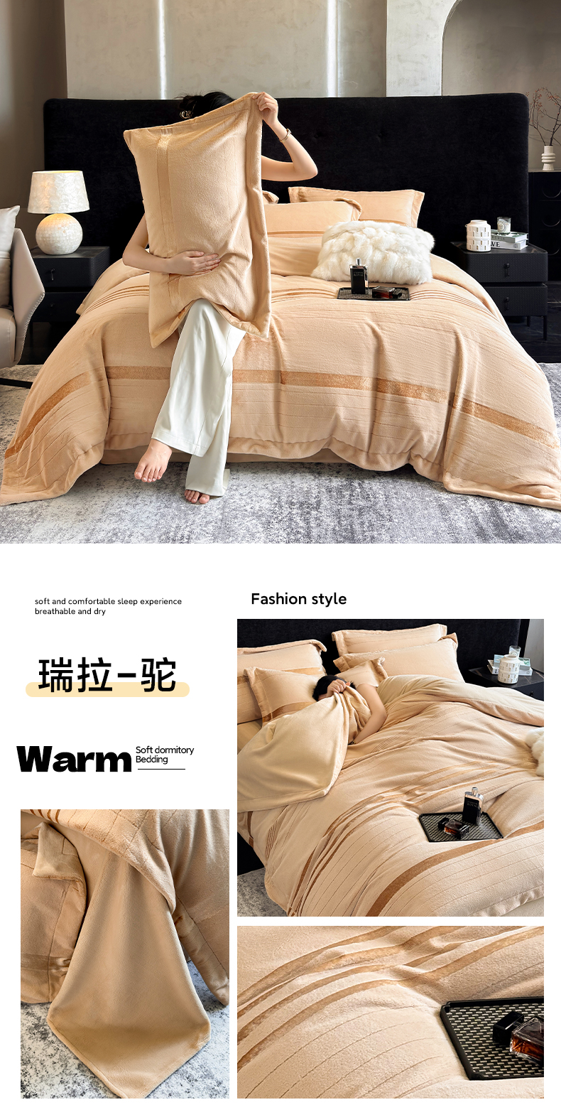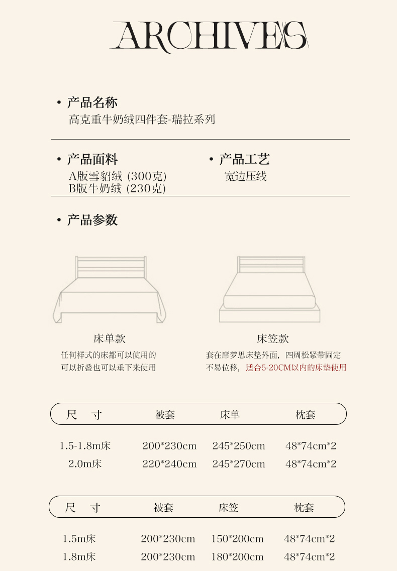 (总)奥汀洛家纺 2025新款高克重托卡斯雪貂绒牛奶绒四件套-瑞拉系列,瑞拉-灰,瑞拉-米,瑞拉-驼