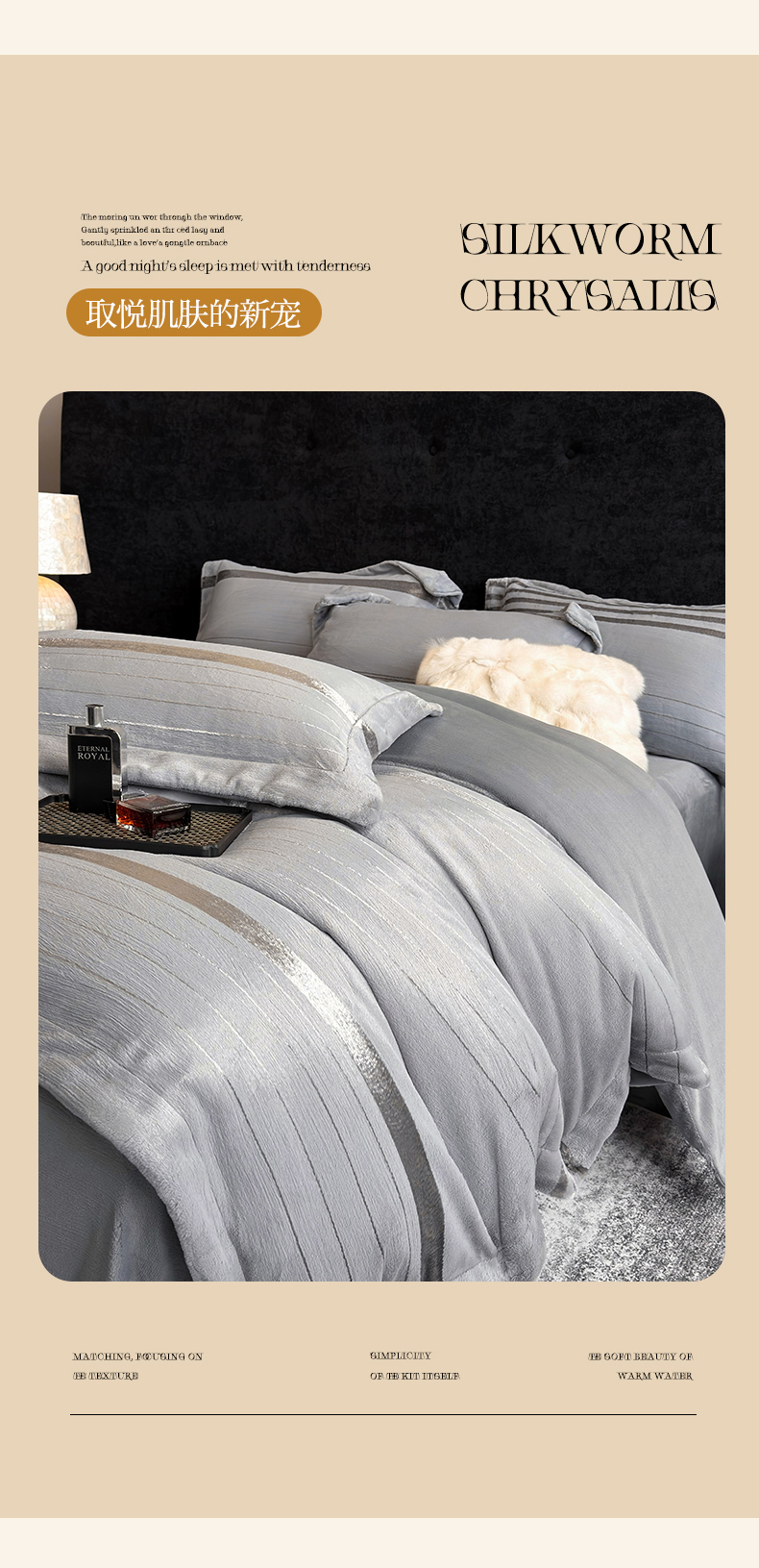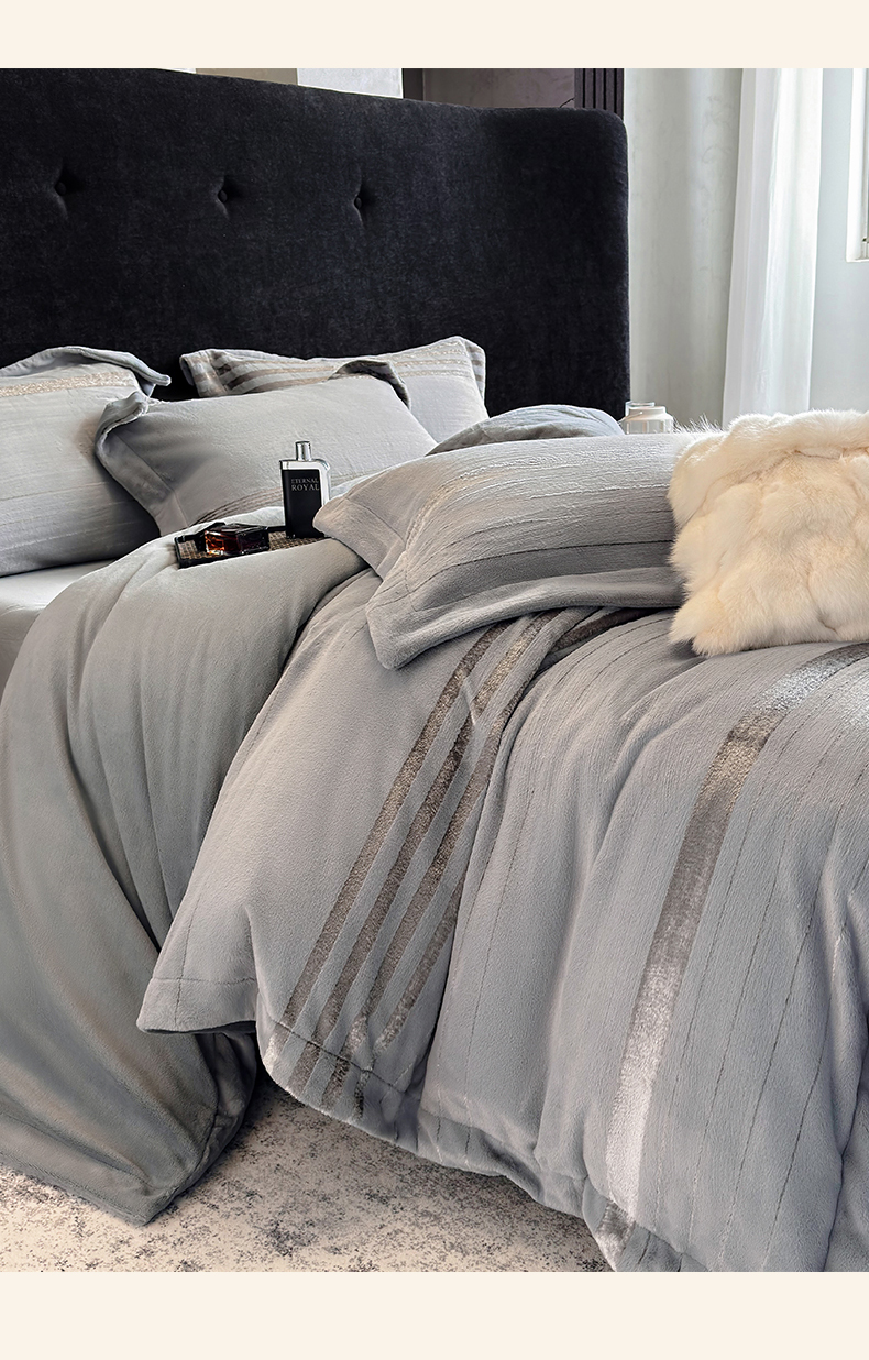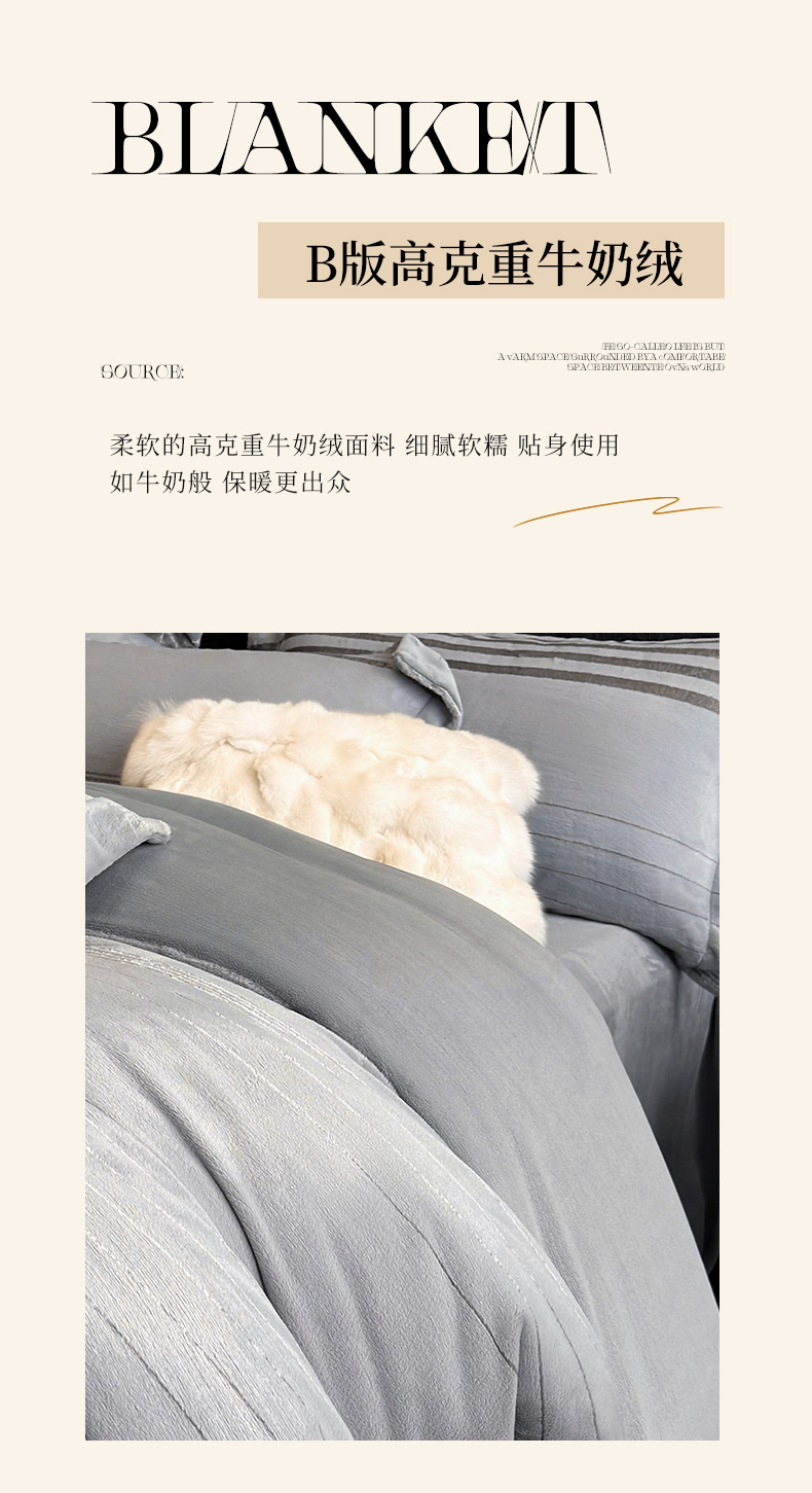 商品名称:奥汀洛家纺 2025新款高克重托卡斯雪貂绒牛奶绒四件套-瑞拉系列 瑞拉-灰