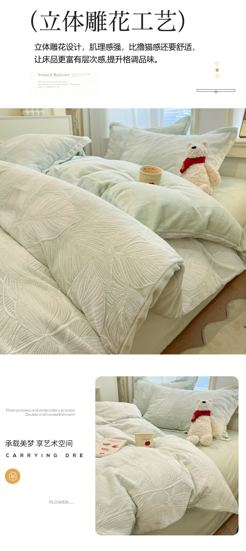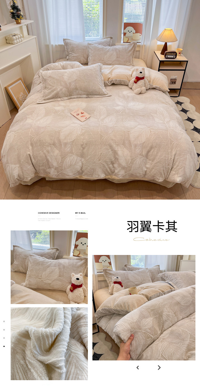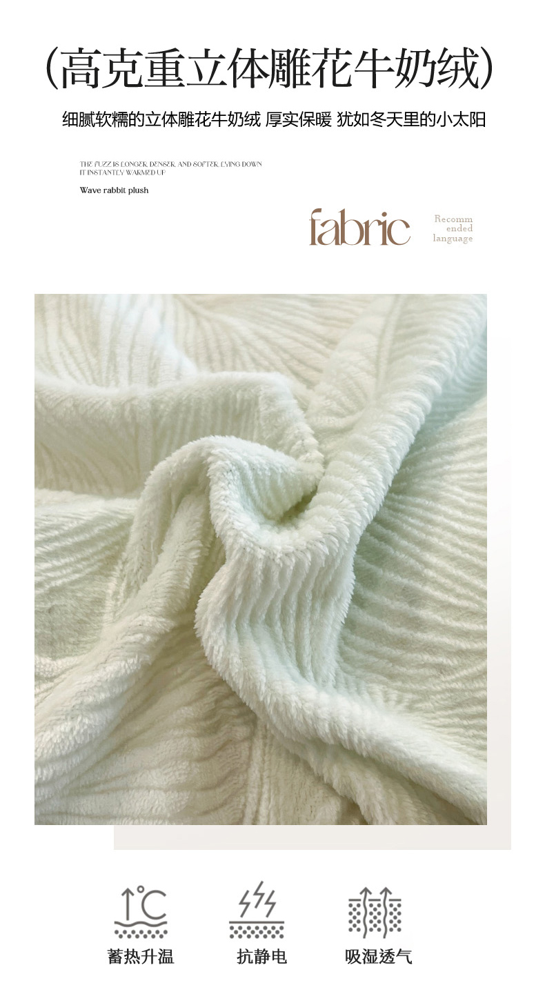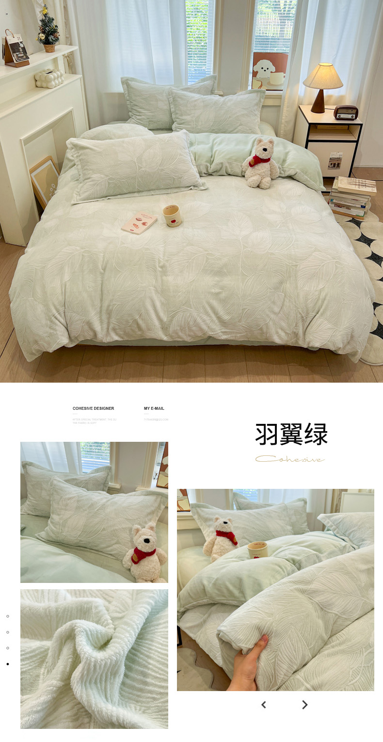 当前位置: 91家纺网 > 商品网购 > 床品套件 > 四件套 > 牛奶绒四件套 > 慕尚家纺 2025新款双色立体雕花牛奶绒四件套 羽翼绿