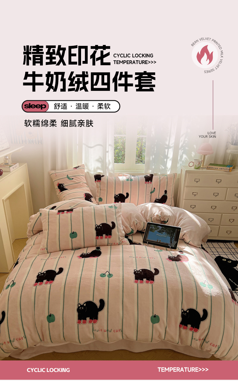 当前位置: 91家纺网 > 商品网购 > 床品套件 > 四件套 > 牛奶绒四件套 > 红嘴企鹅 2025新款精致印花牛奶绒四件套 香蕉猫