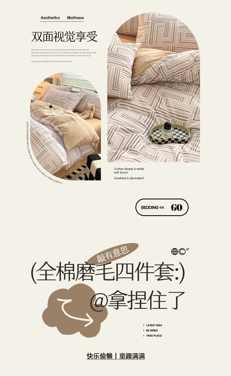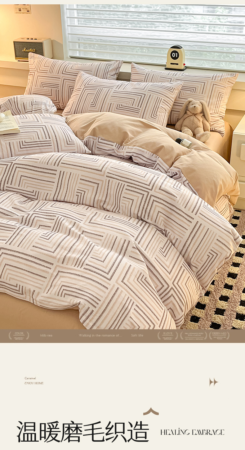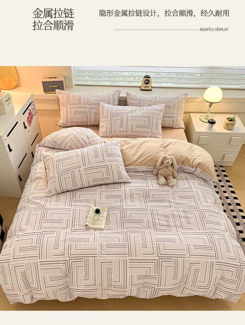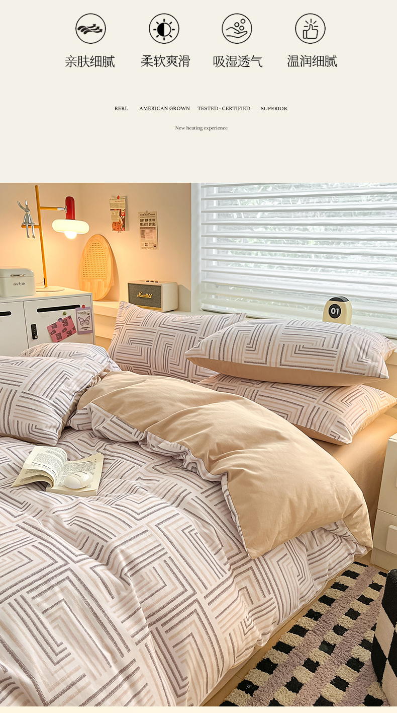 商品名称:瑞莱 2025新款纯棉磨毛印花四件套 迷宫
