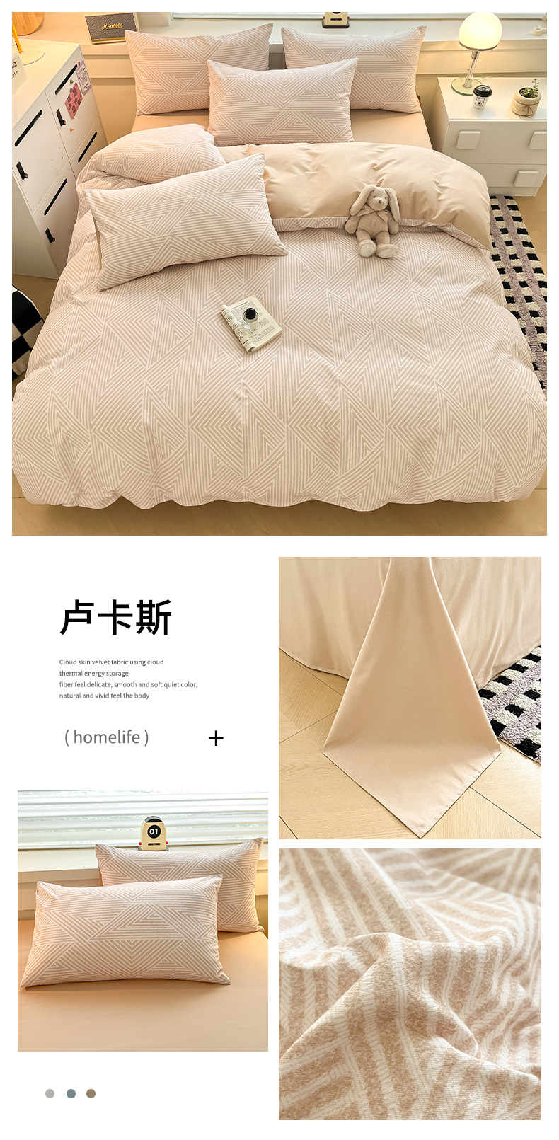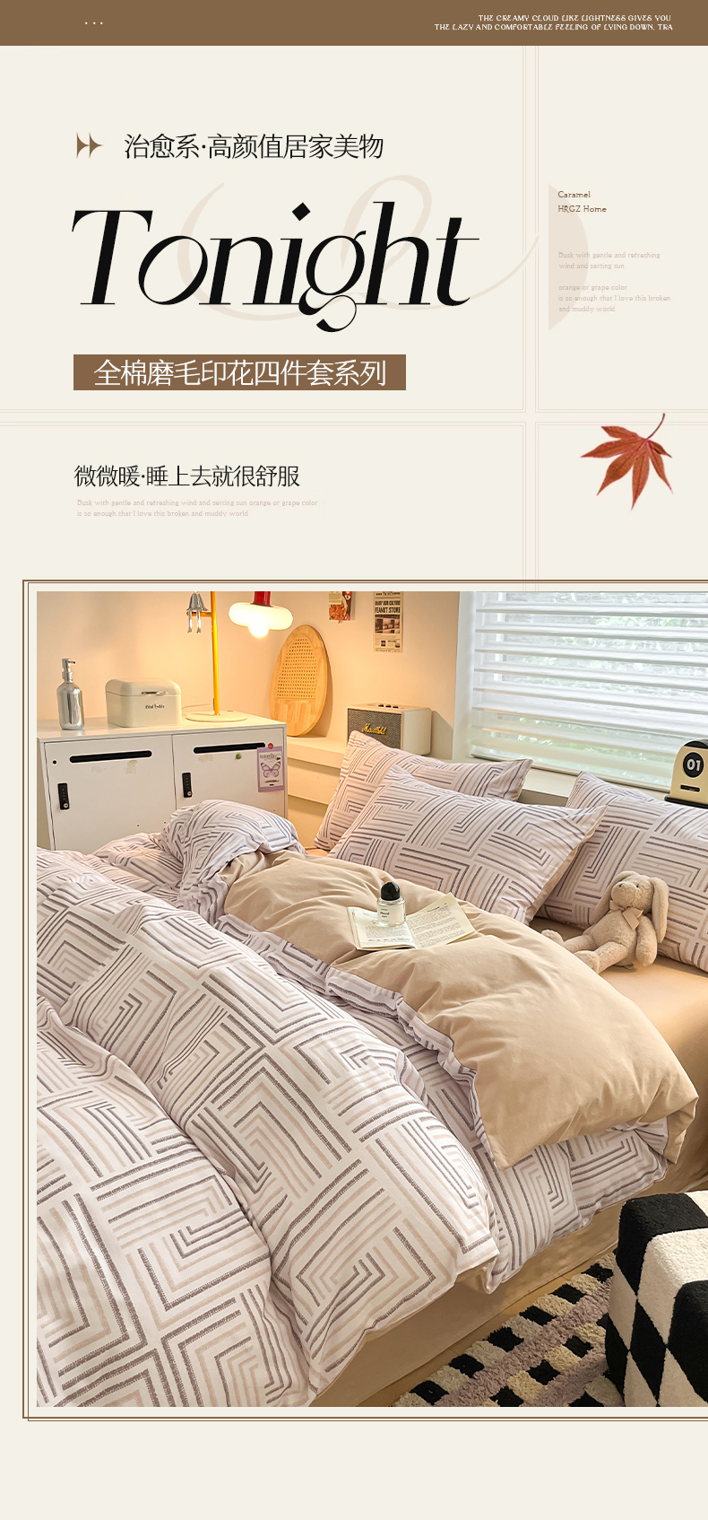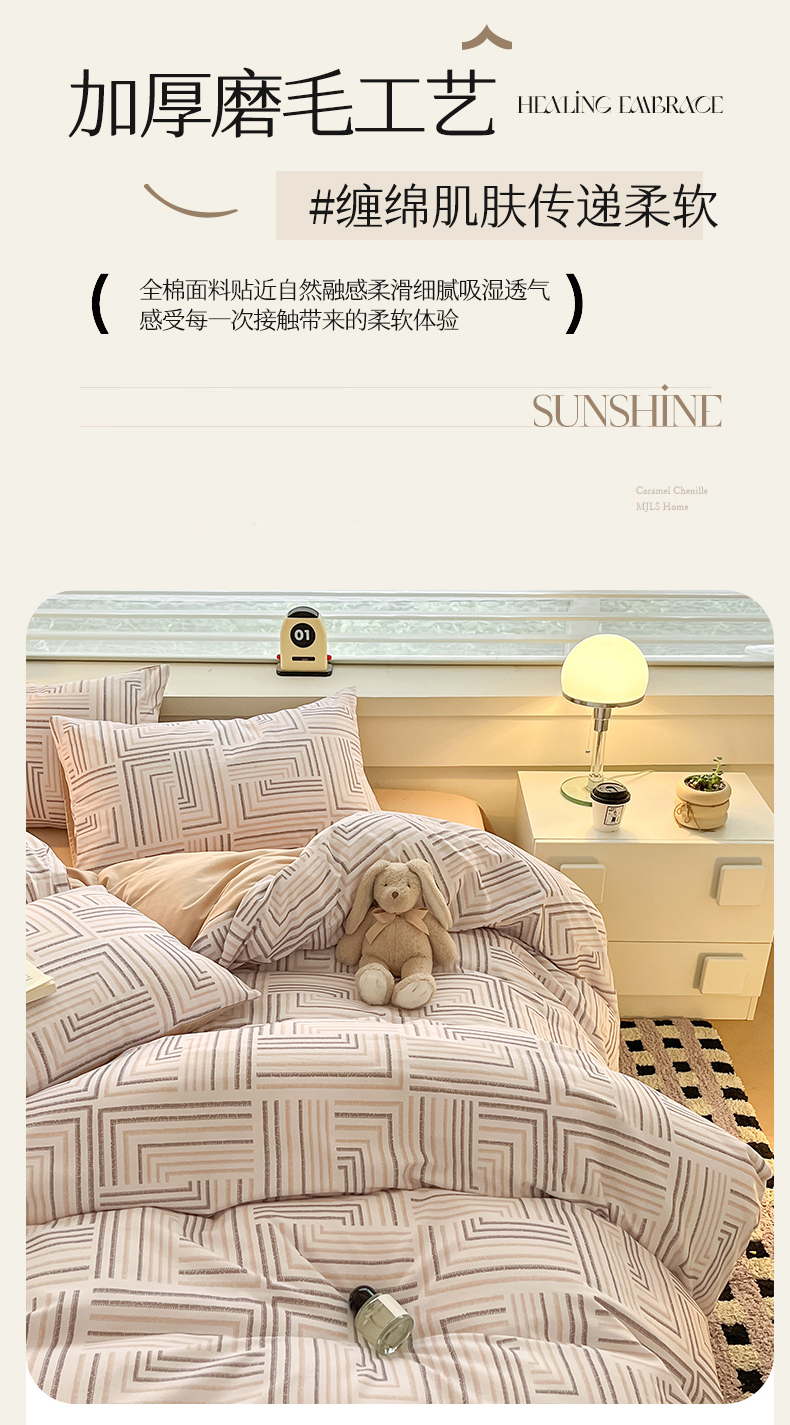 商品名称:瑞莱 2025新款纯棉磨毛印花四件套 迷宫