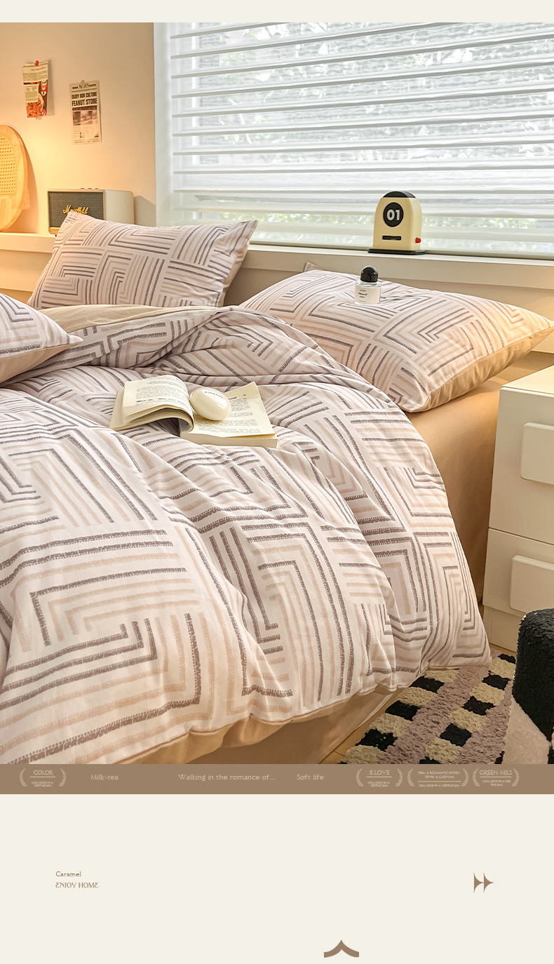 (总)瑞莱 2026年新款全棉纯棉水洗棉贝壳边四件套,棕岸蓝漪,暖阳黄棕,岸屿青芒,粉序白织,旧港蓝棕,雾屿紫青