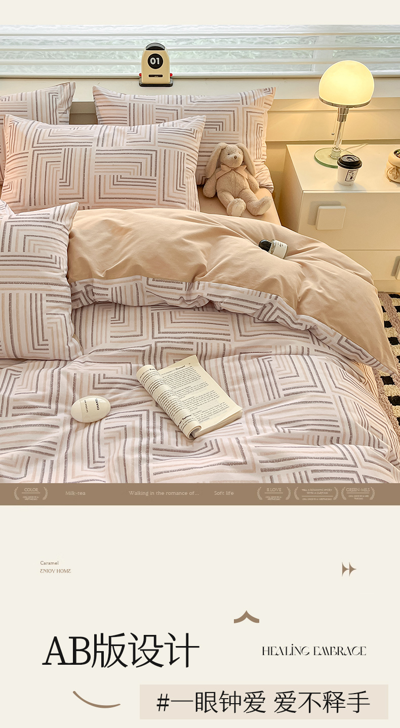 瑞莱 2025新款纯棉磨毛印花四件套 迷宫