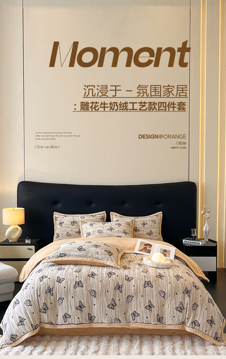 (总)金麦家纺 2025新款雕花牛奶绒工艺蝴蝶款四件套,蝴蝶-咖,蝴蝶-灰,蝴蝶-绿,幻蝶-粉,幻蝶-蓝