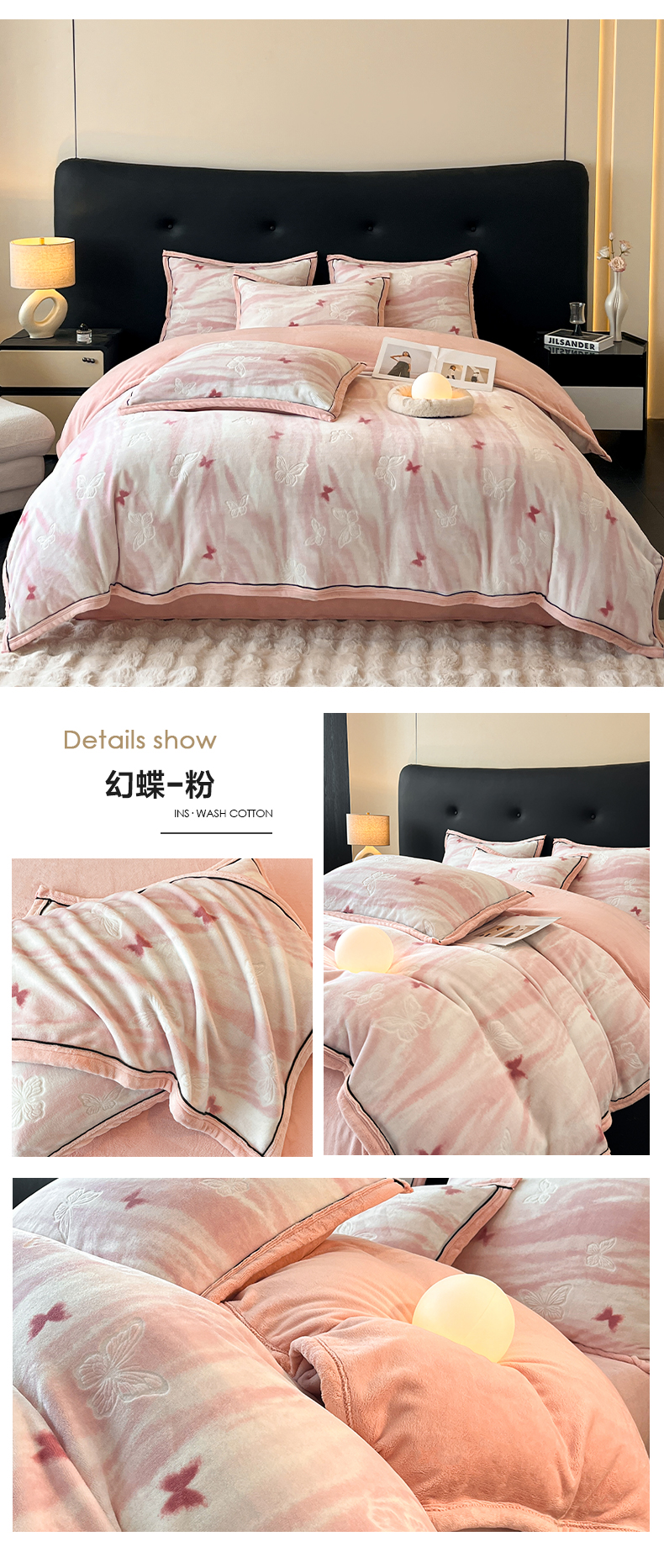 金麦家纺 2025新款雕花牛奶绒工艺蝴蝶款四件套 幻蝶-粉