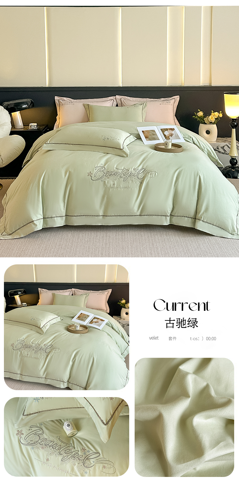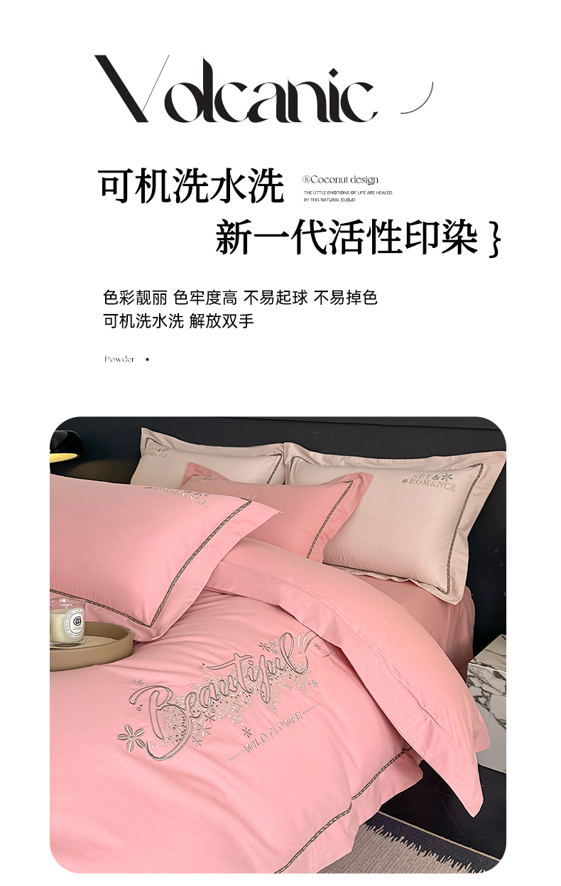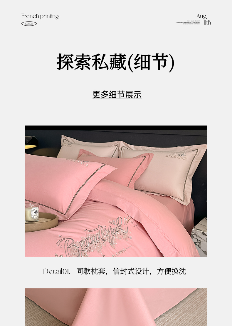 商品名称:曲之慕 2025新款高端全棉纯棉长绒棉磨毛刺绣四件套【高端礼盒】 粉豆沙