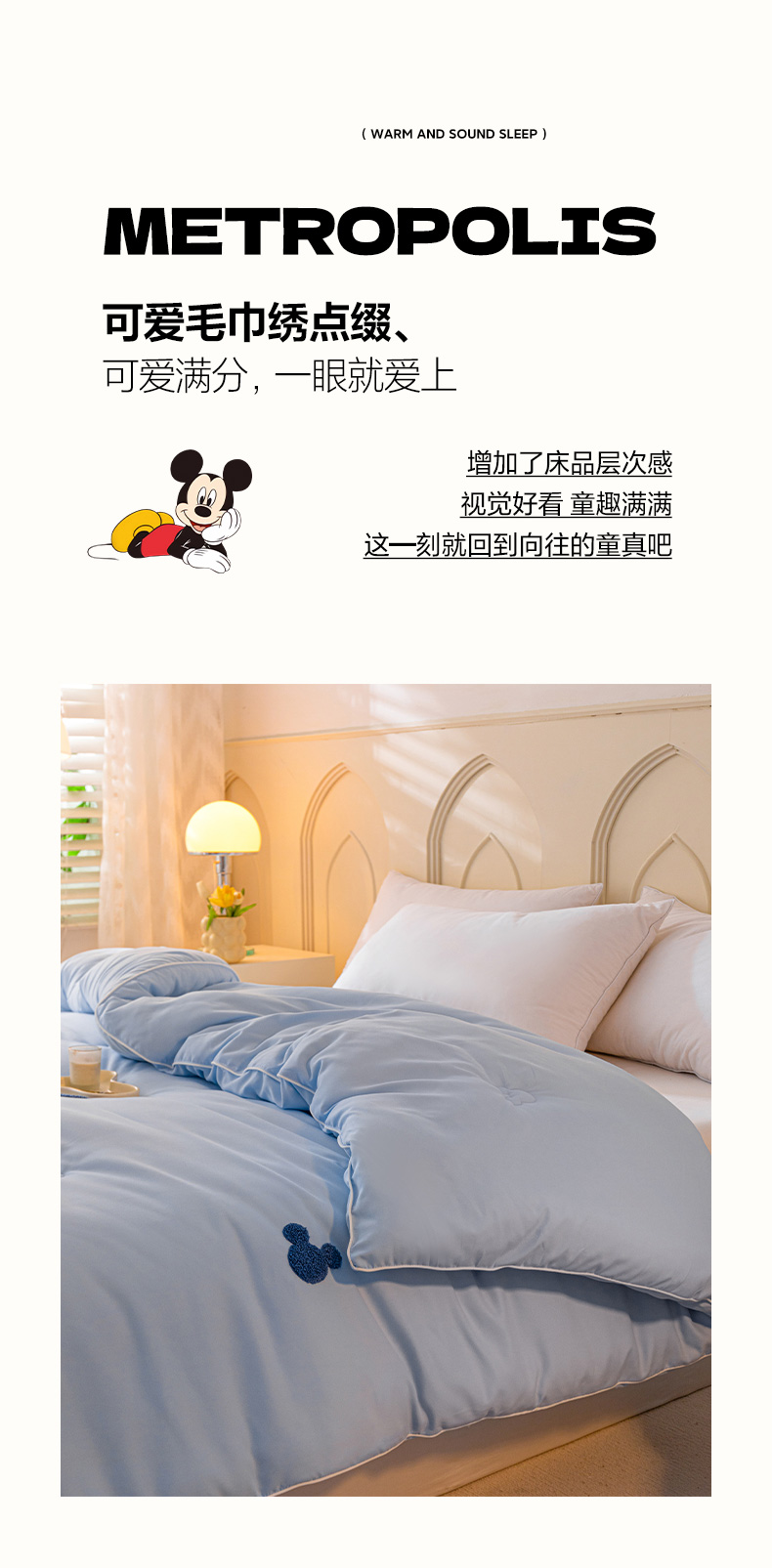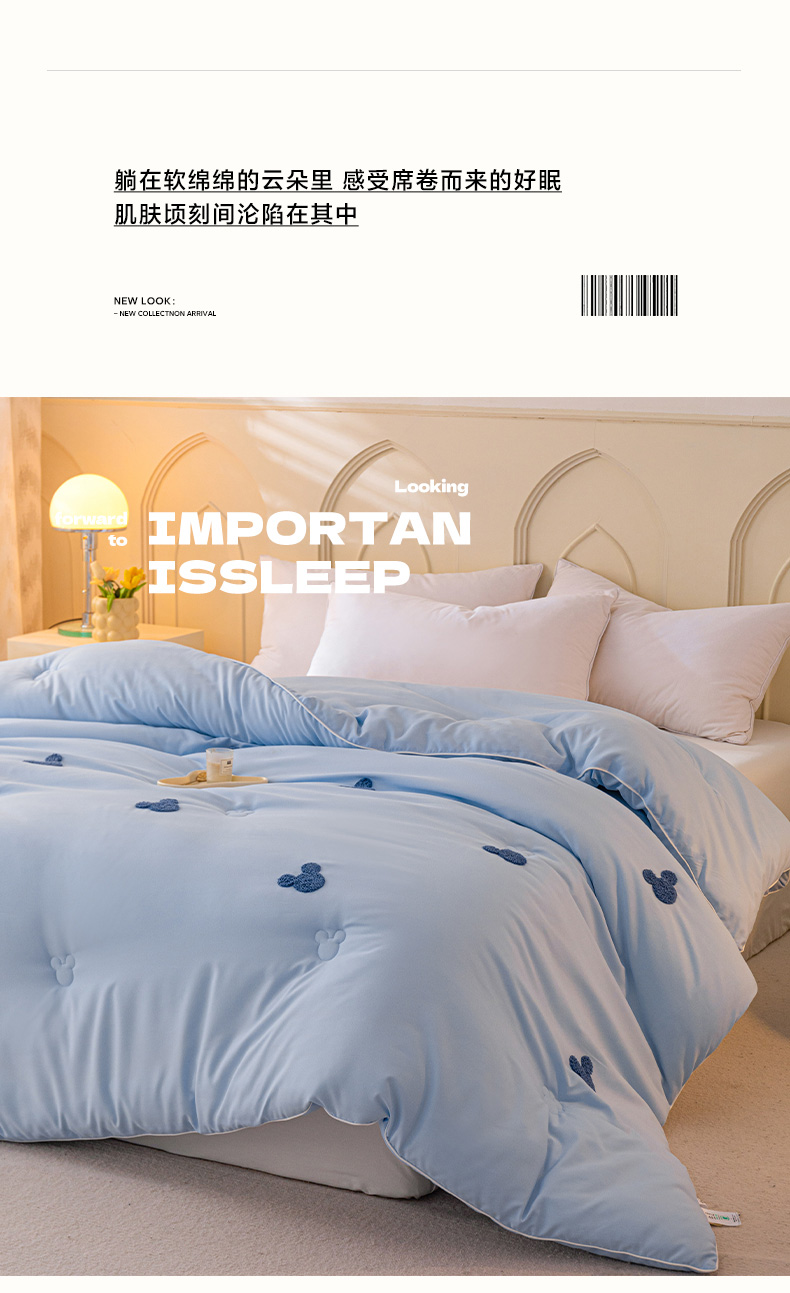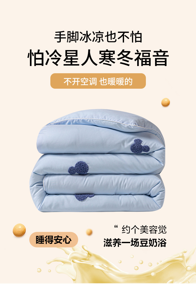 一加一 2025新款中科院抗菌毛巾刺绣大豆被被子被芯-米奇 米奇-蓝