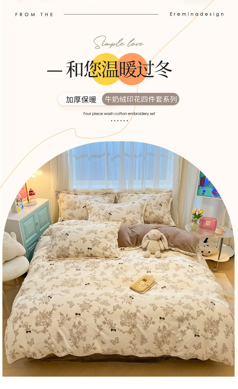 当前位置: 91家纺网 > 商品网购 > 床品套件 > 四件套 > 牛奶绒四件套 > 慕尚家纺 2025新款高克重田园花卉类加厚牛奶绒3.5kg四件套 丽娜