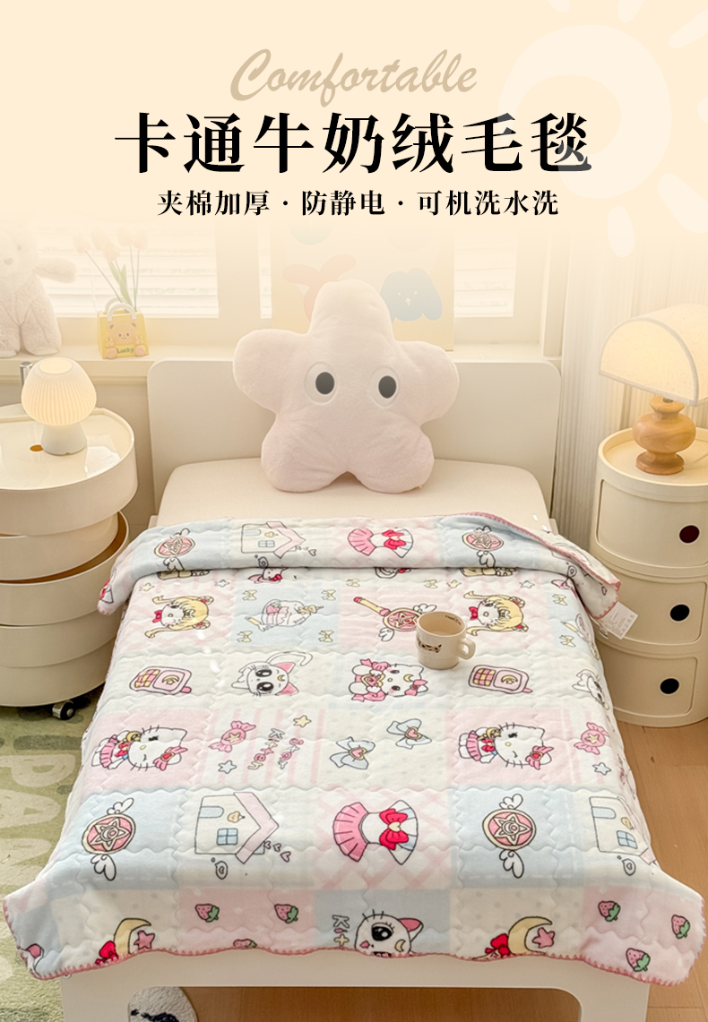 (总)禧缘家纺(原梦想家) 2025秋冬新款儿童加厚三层夹棉牛奶绒毛毯冬季双面绒保暖盖毯,巴士宝贝,汪汪家族,萌趣伙伴,奶油小狗,可可甜心,多彩恐龙,魔法宝贝
