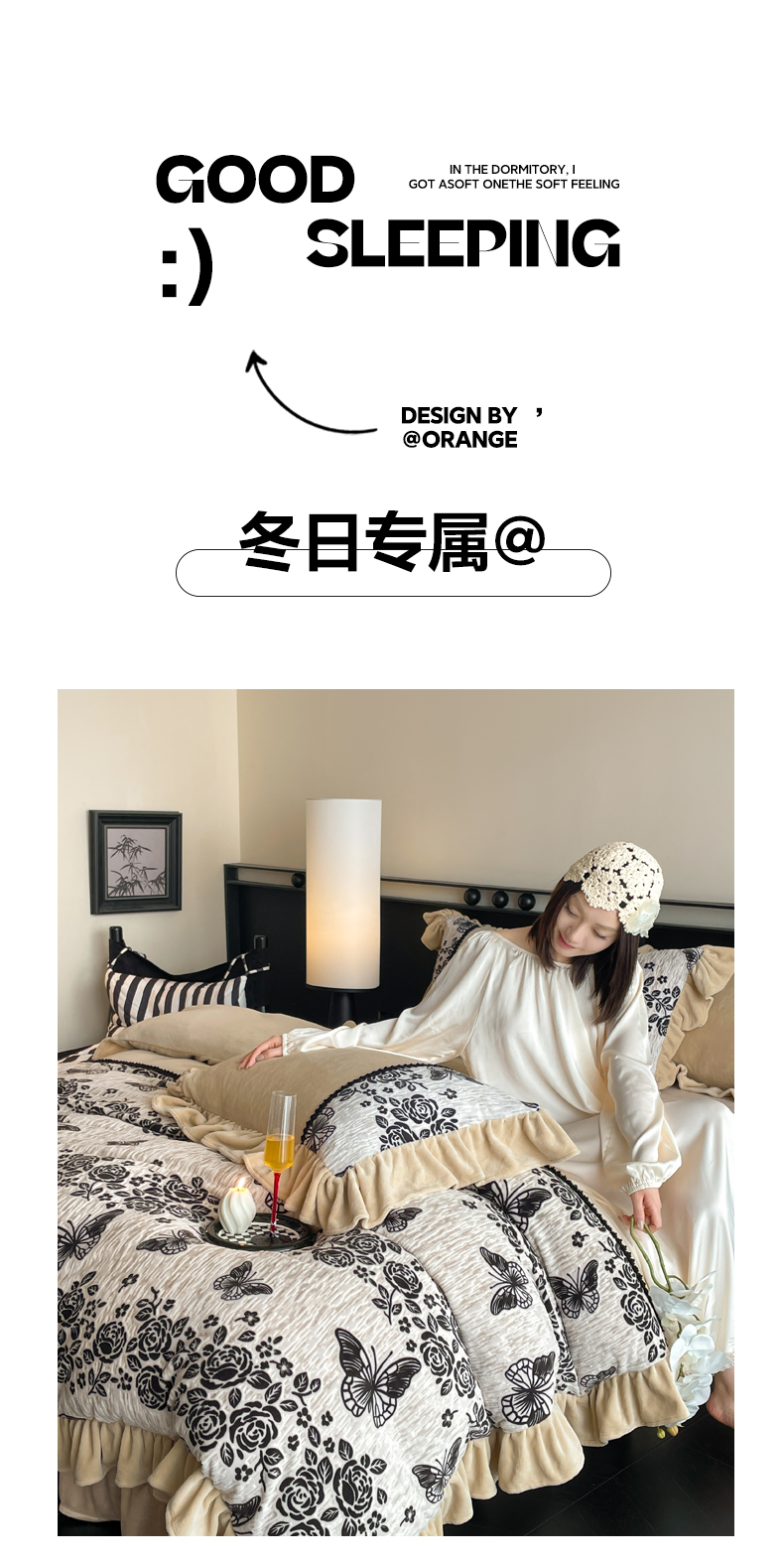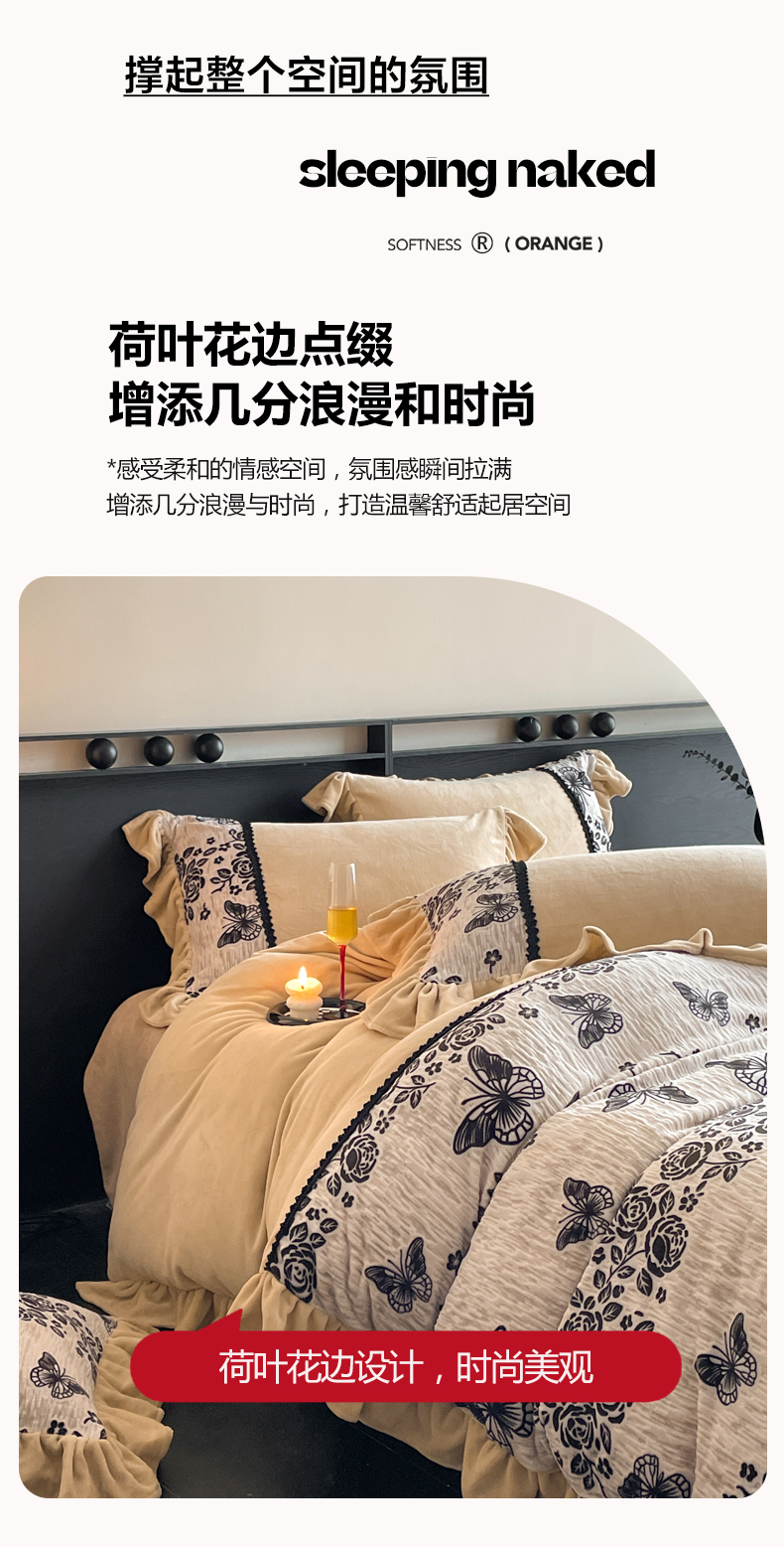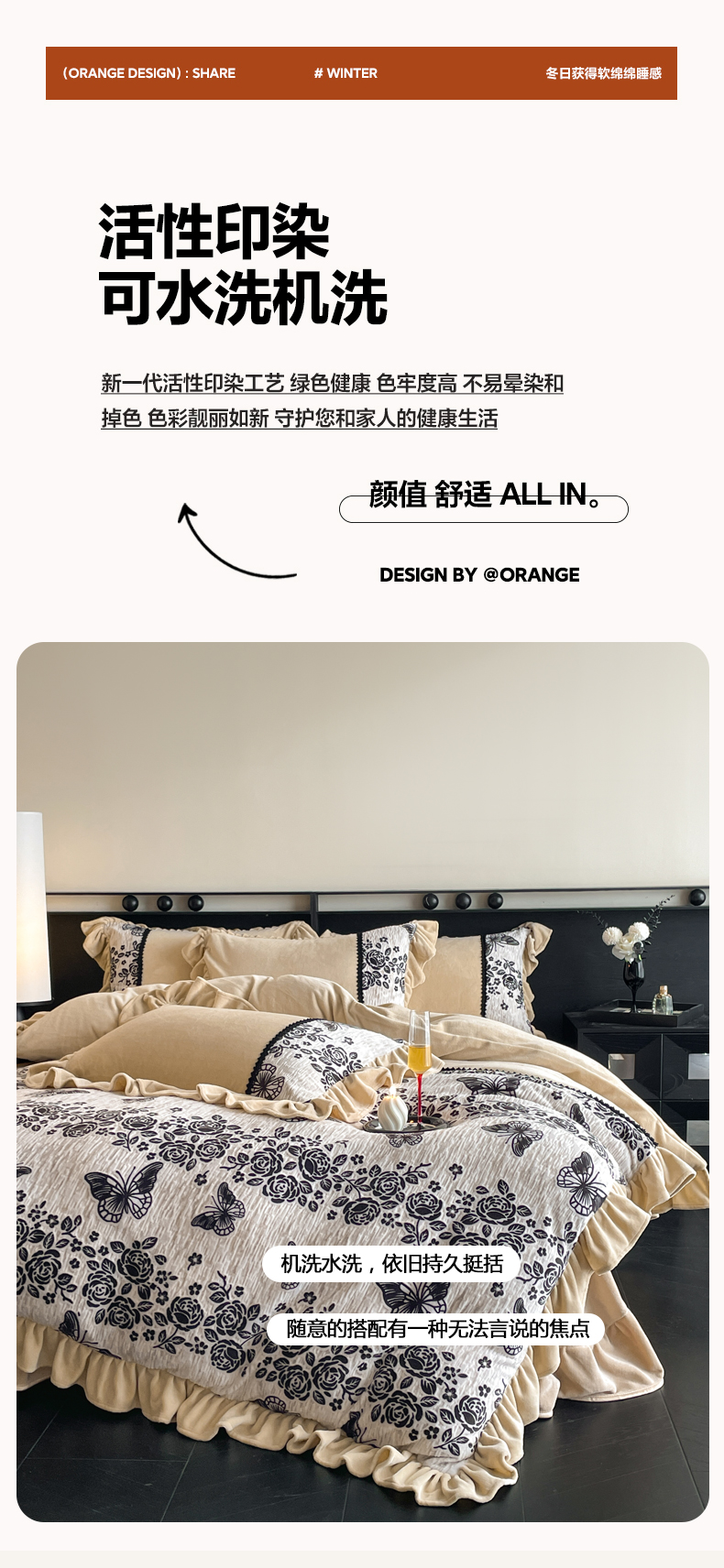 商品名称:慕木家纺 2025新款A类高克重高端雕花烂花AB版工艺款拼接四件套绮梦系列(直播热款) 墨韵蝶香
