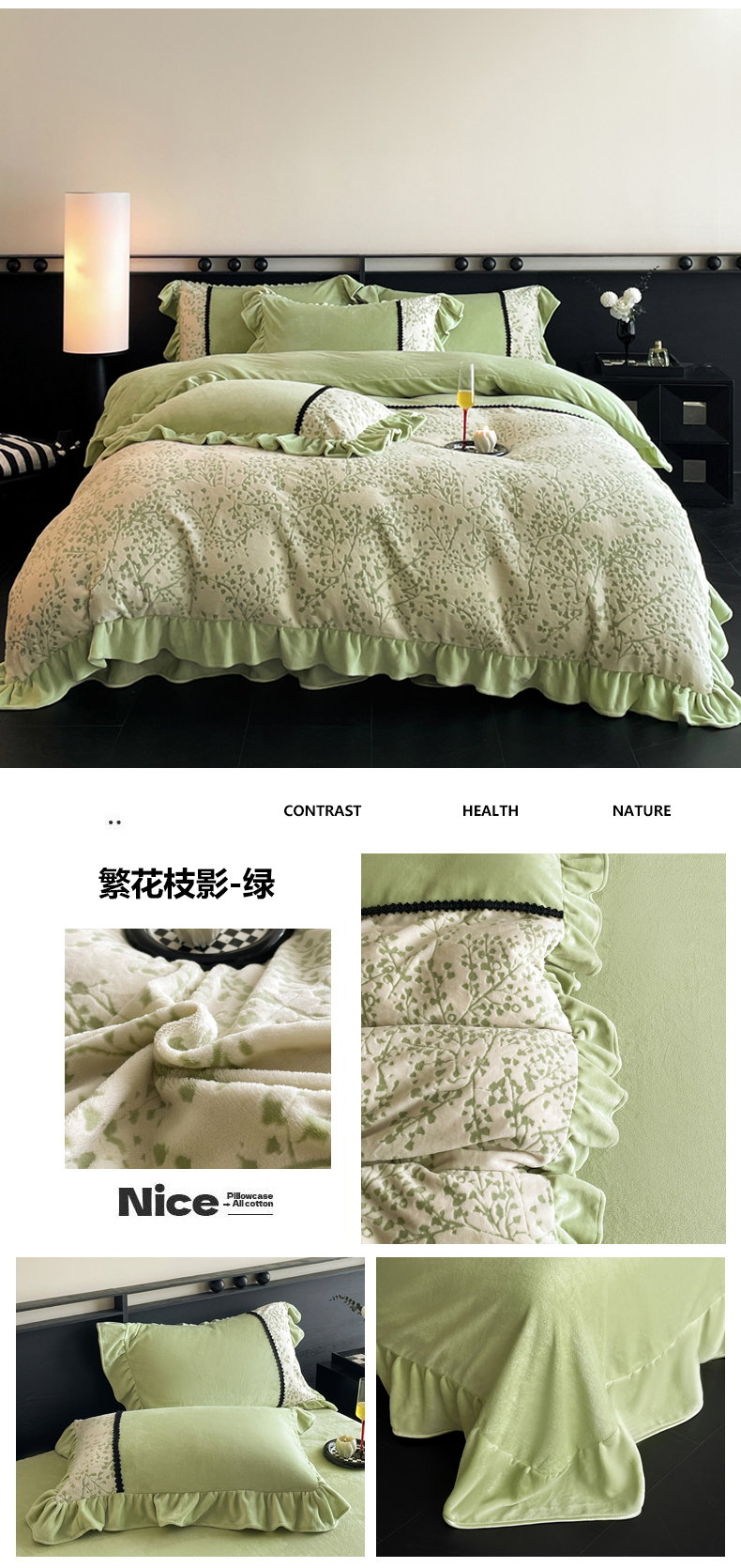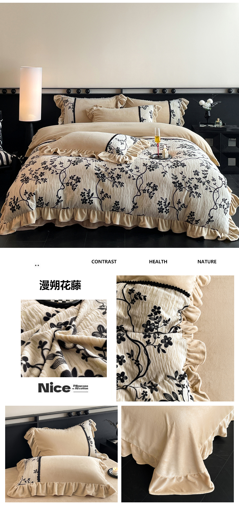 (总)慕木家纺 2025新款A类高克重高端雕花绒工艺款刺绣拼接四件套锦绣芳华系列(直播热款)提供买家秀,锦绣芳华-月岩灰,锦绣芳华-卡其,锦绣芳华-玉粉