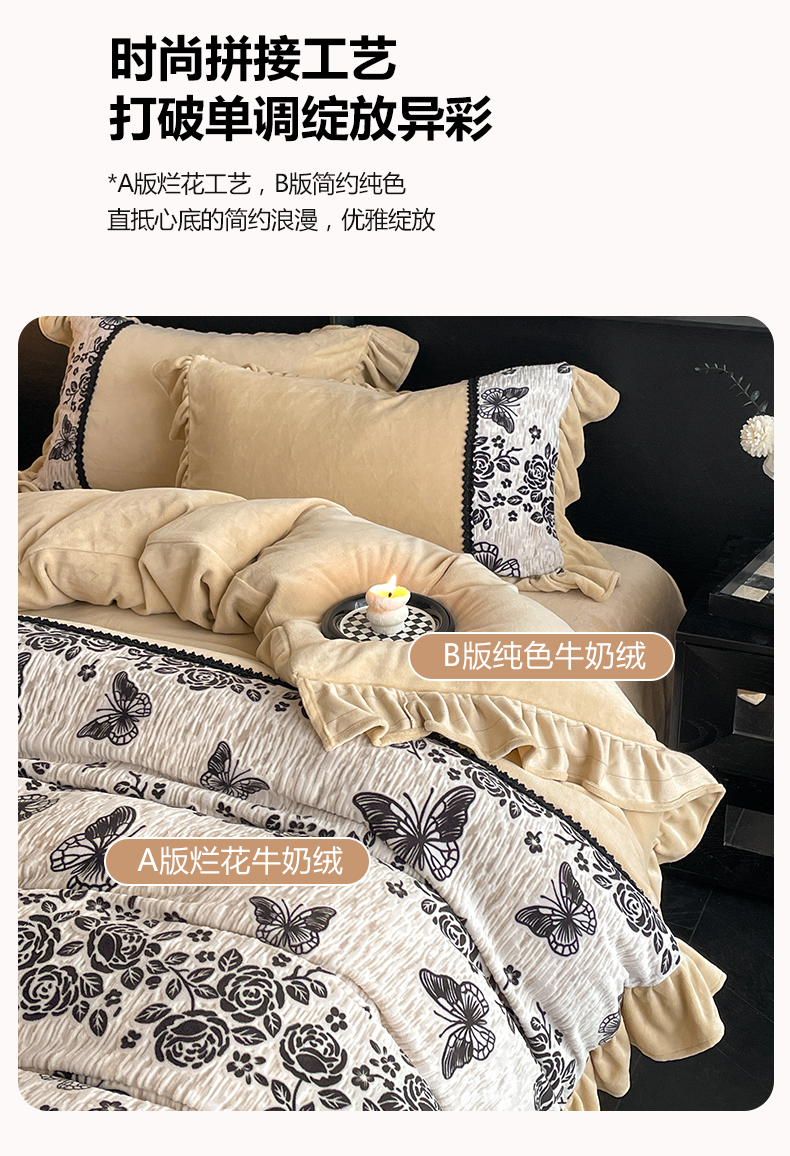 慕木家纺 2025新款A类高克重高端雕花烂花AB版工艺款拼接四件套绮梦系列(直播热款) 墨韵蝶香