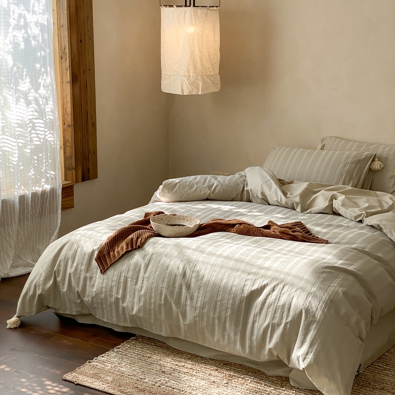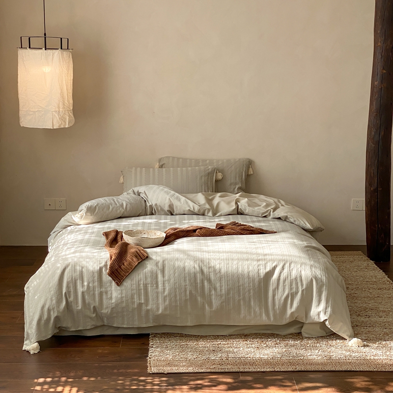 当前位置: 91家纺网 > 商品网购 > 床品套件 > 四件套 > 全棉普通四件套 > 玉宇阁家居 2025新款色织空气全棉纯棉大提花磨毛四件套(流苏款) 流苏款-日欢喜