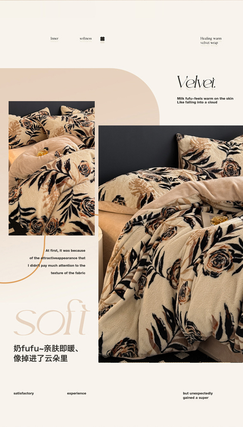 当前位置: 91家纺网 > 商品网购 > 床品套件 > 四件套 > 其它四件套 > 眠博士 2025新款轻奢款美拉德印花兔兔绒四件套 花朵暖咖