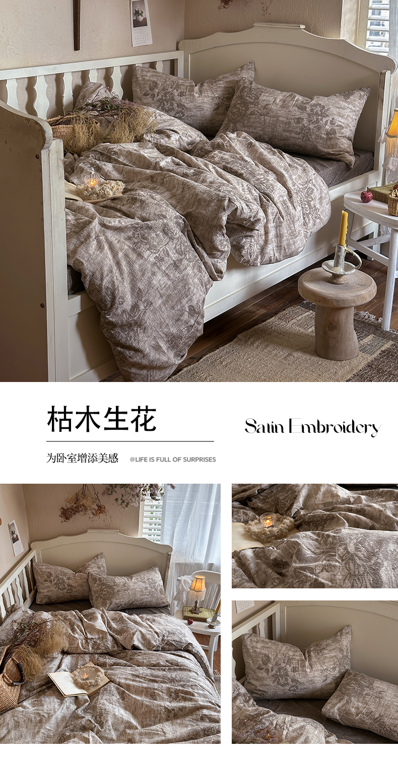 当前位置: 91家纺网 > 商品网购 > 床品套件 > 四件套 > 其它四件套 > 初念 2025新款1亚麻复古诧季风系列皱皱纱提花四件套(提供买家秀) 诧季风-月华绣影