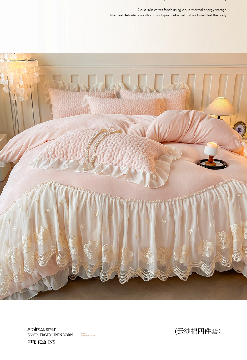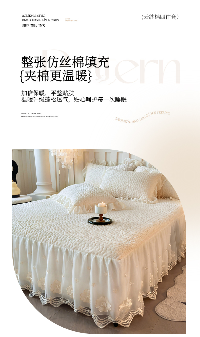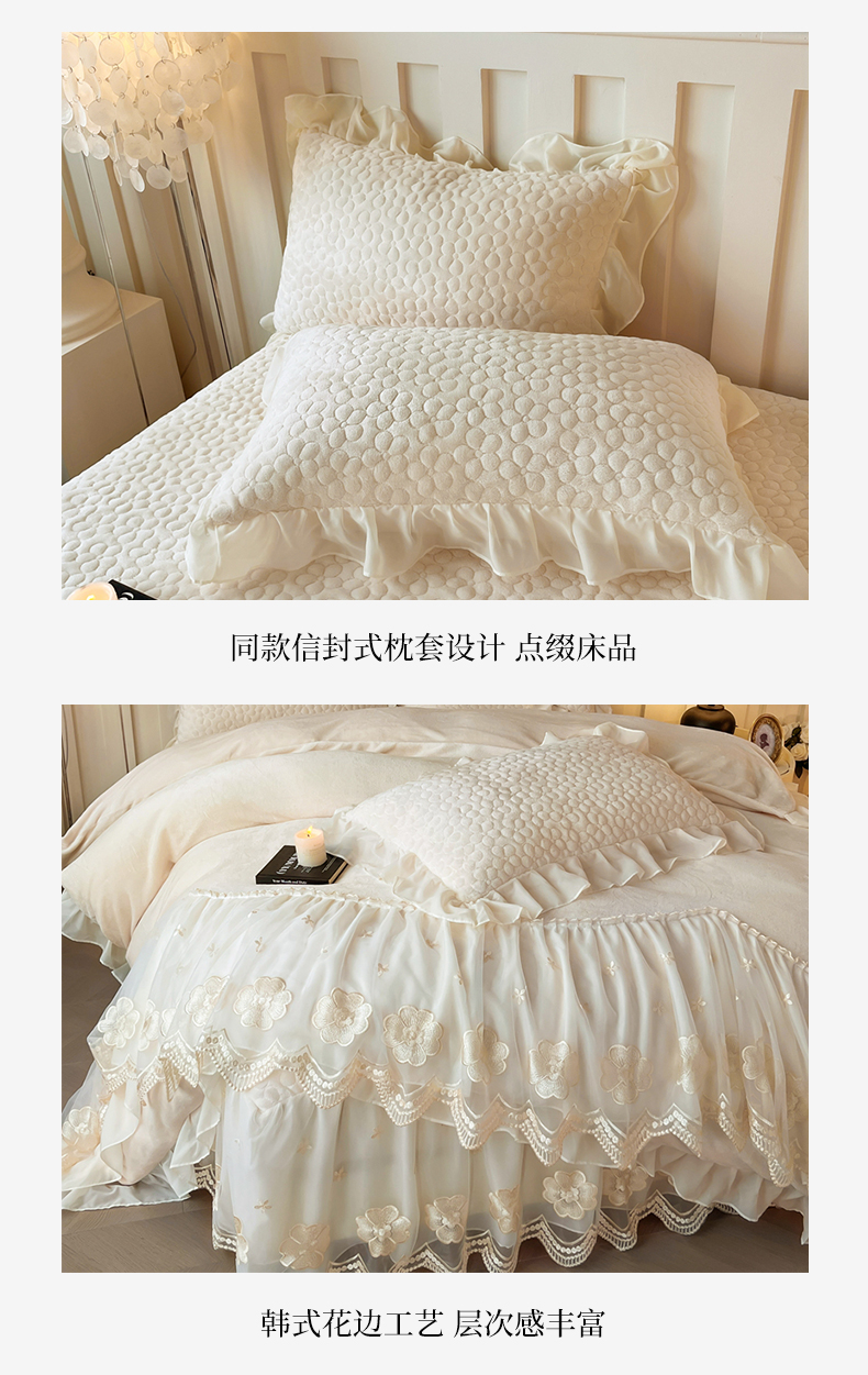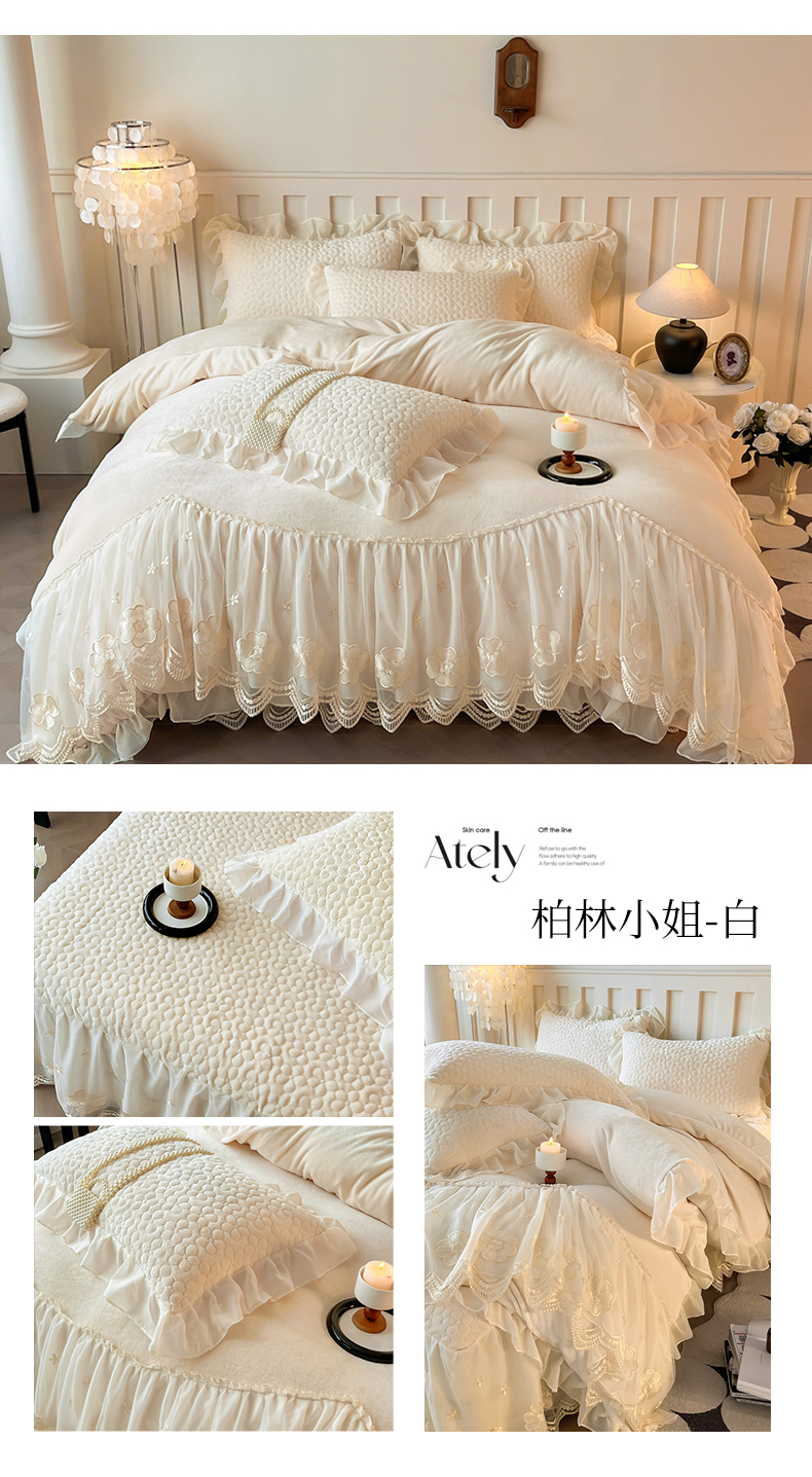 当前位置: 91家纺网 > 商品网购 > 床品套件 > 四件套 > 牛奶绒四件套 > (总)花香四季家纺 2025新款牛奶绒夹棉床裙款四件套-柏林小姐