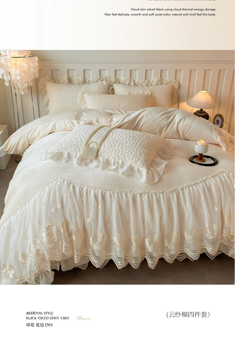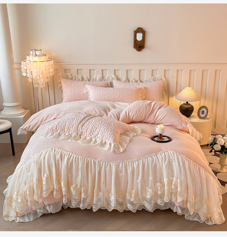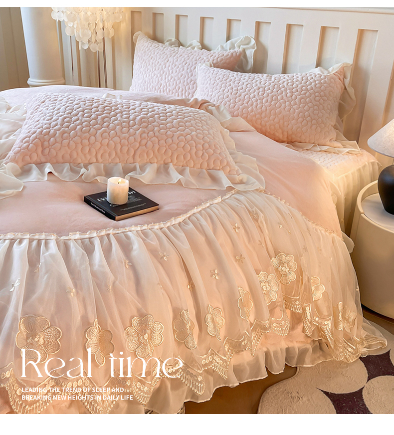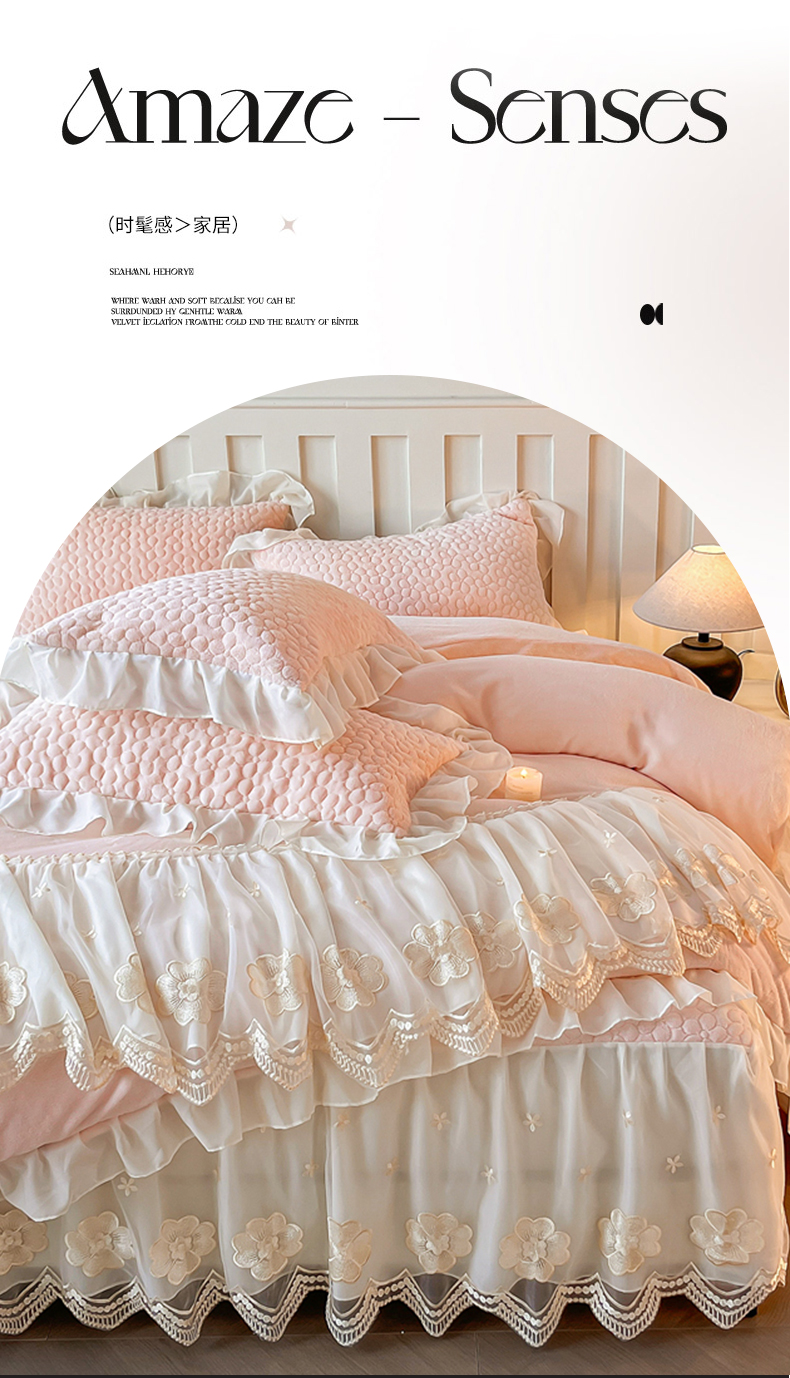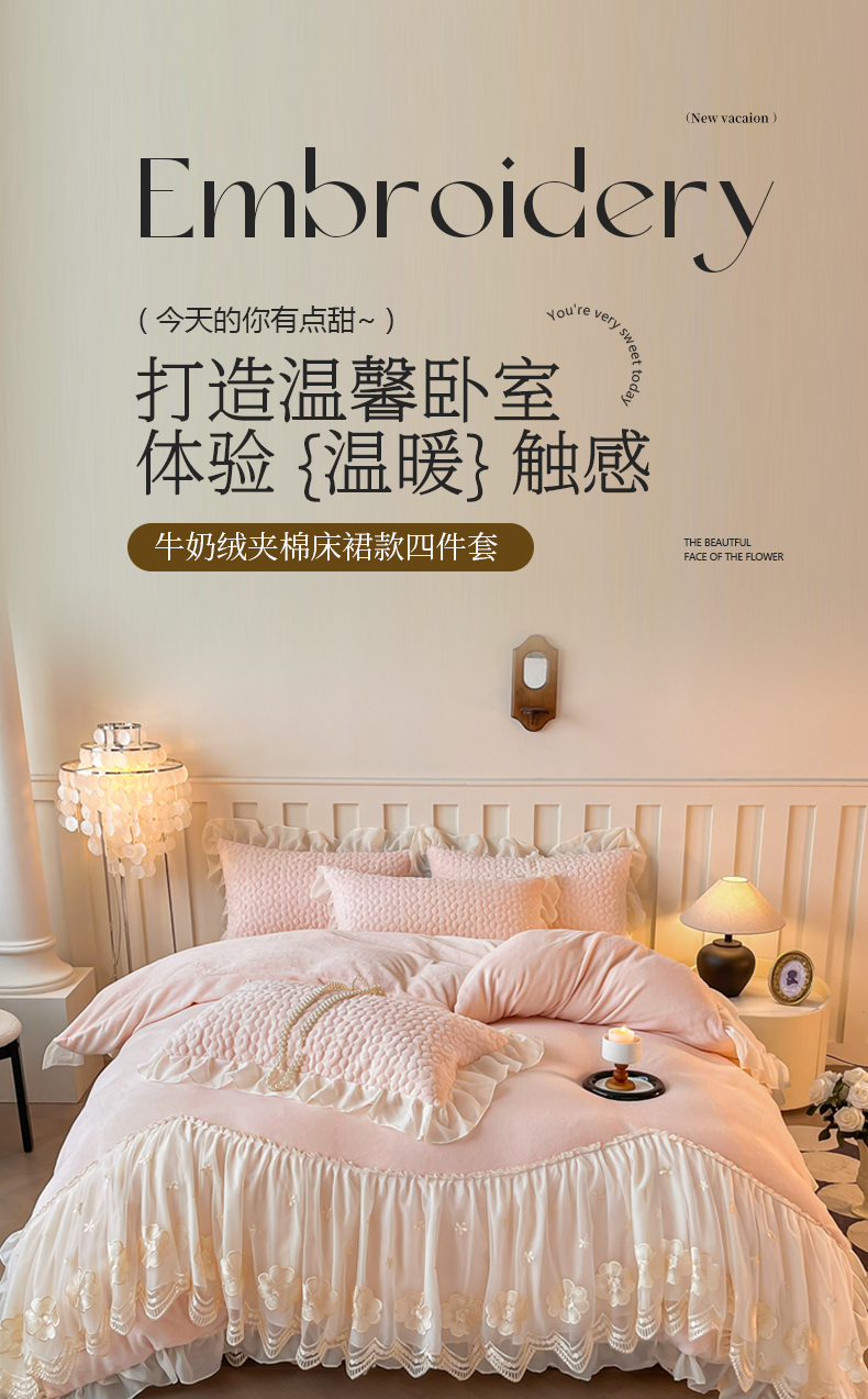 当前位置: 91家纺网 > 商品网购 > 床品套件 > 四件套 > 牛奶绒四件套 > (总)花香四季家纺 2025新款牛奶绒夹棉床裙款四件套-柏林小姐