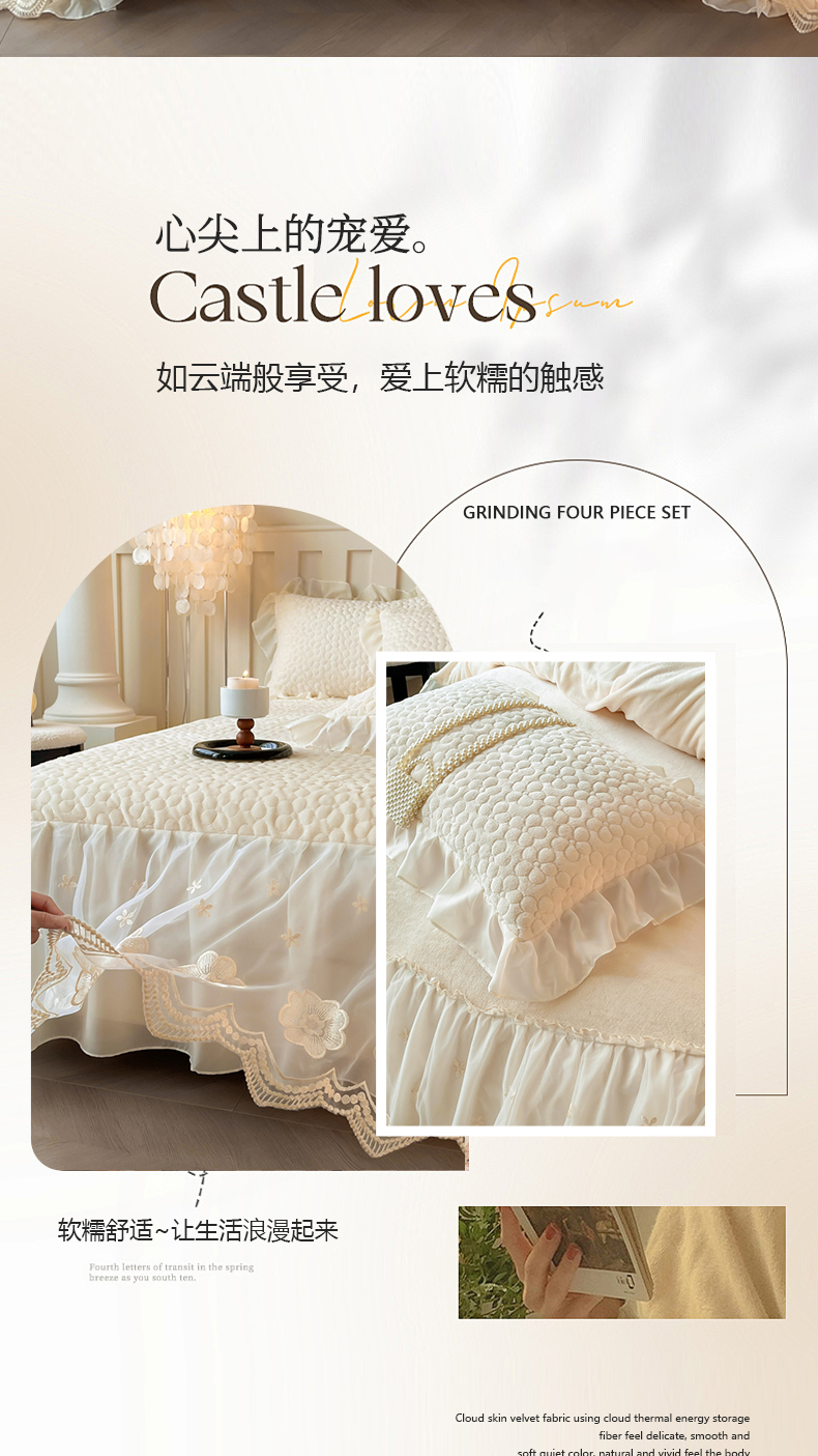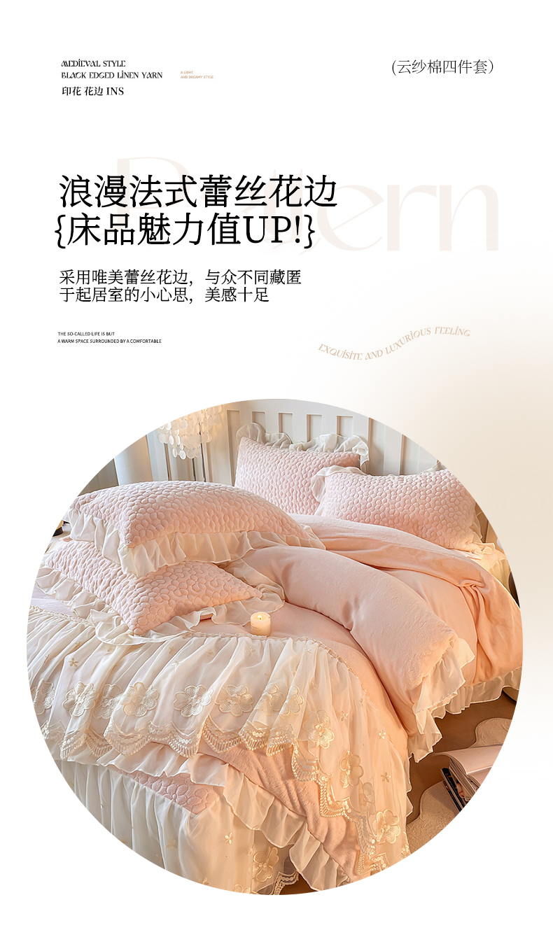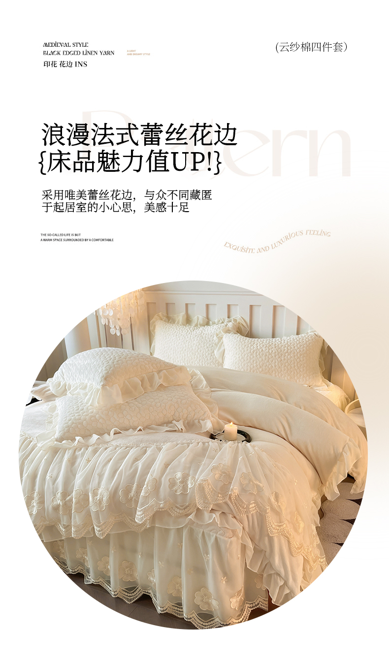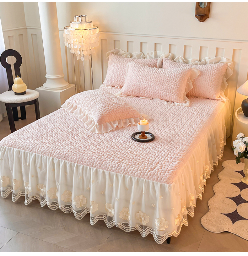 当前位置: 91家纺网 > 商品网购 > 床品套件 > 四件套 > 牛奶绒四件套 > (总)花香四季家纺 2025新款牛奶绒夹棉床裙款四件套-柏林小姐