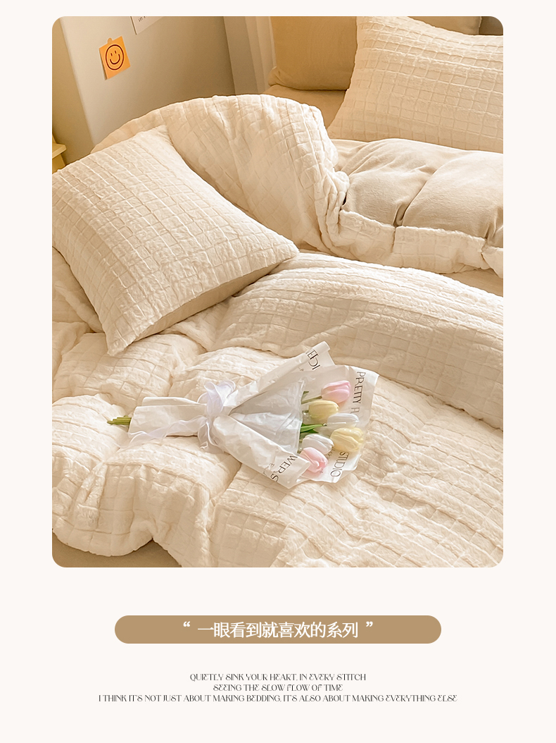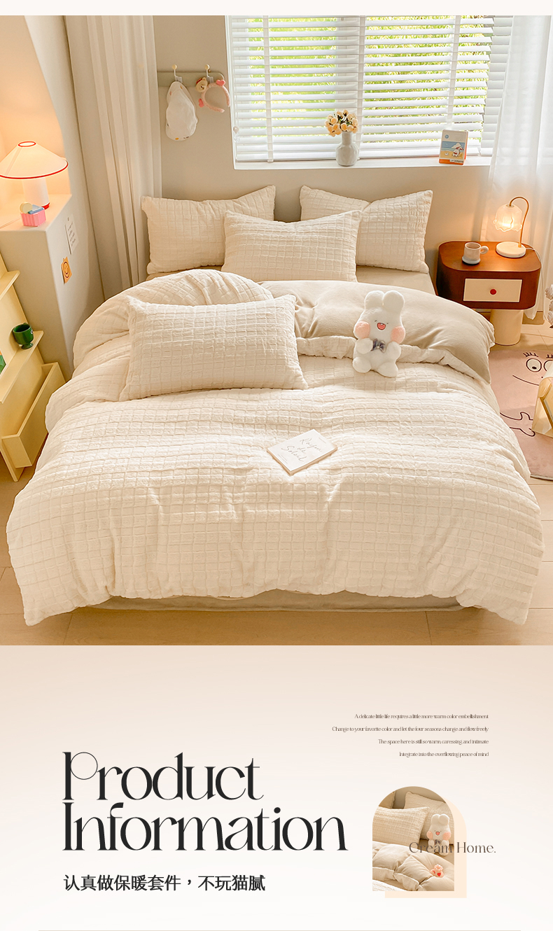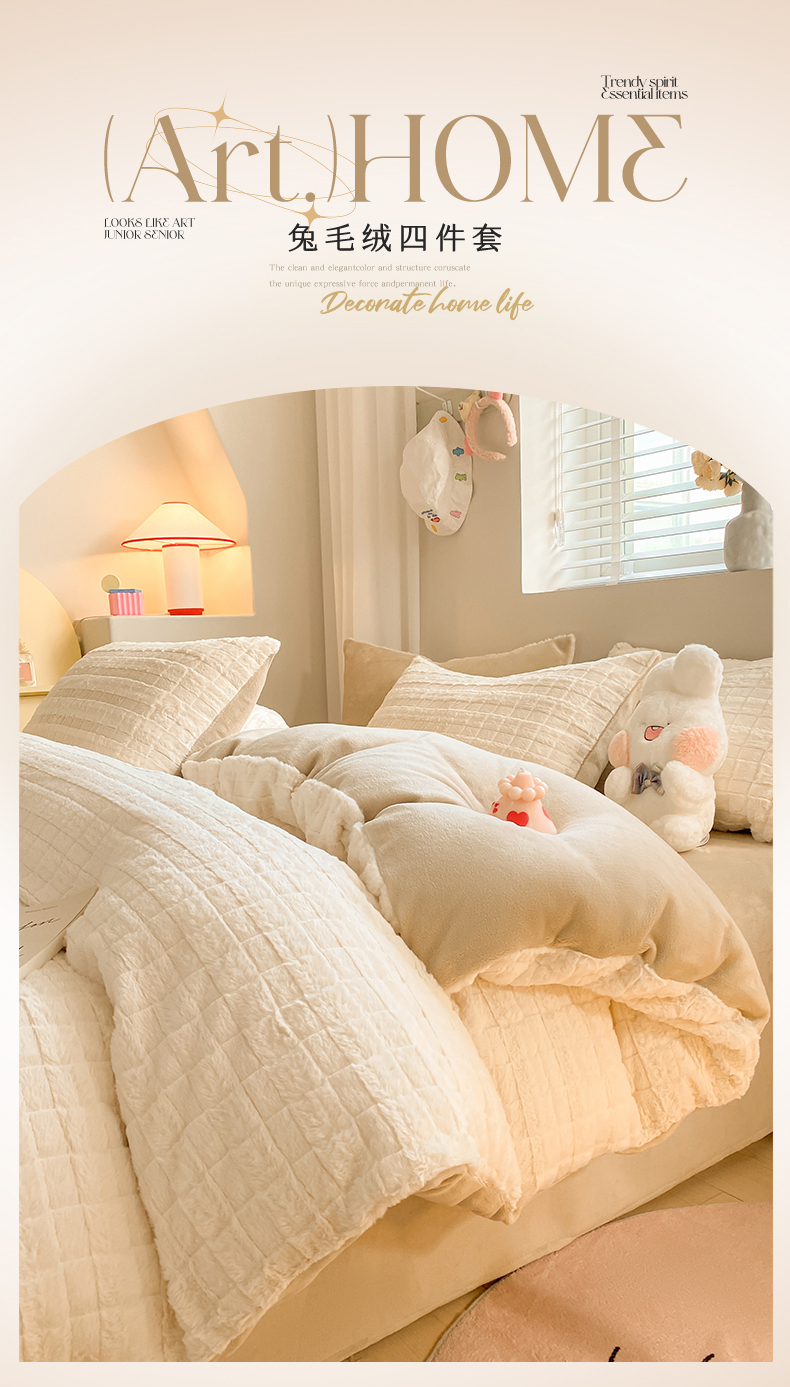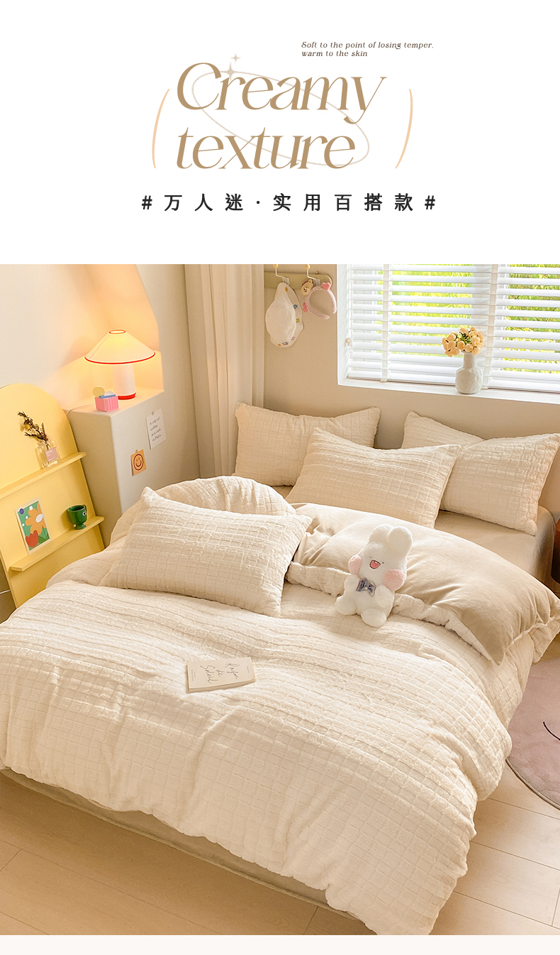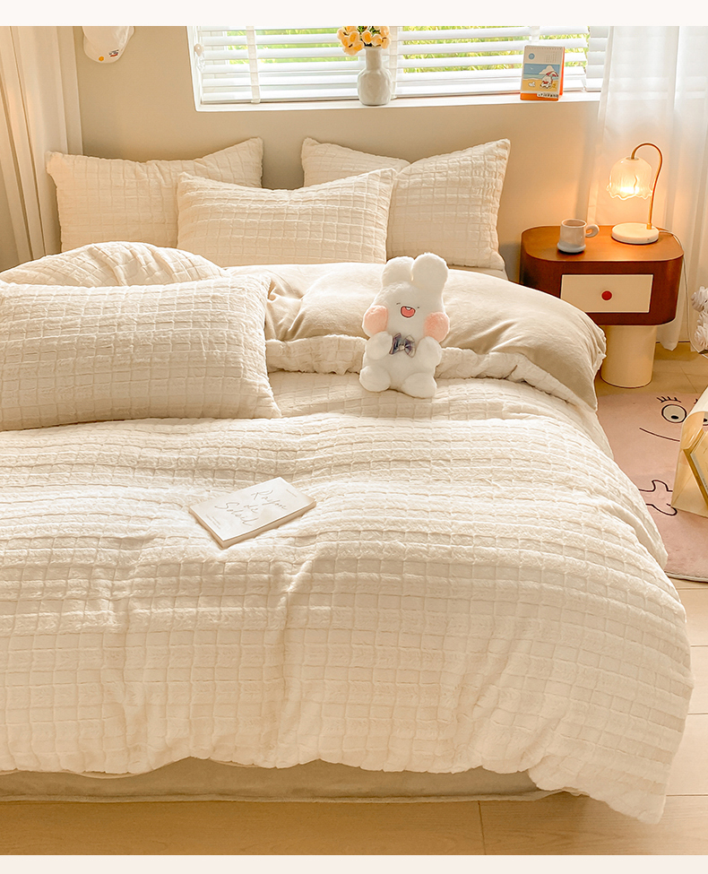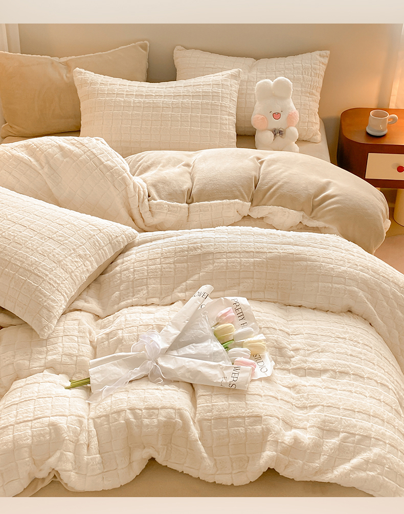 当前位置: 91家纺网 > 商品网购 > 床品套件 > 四件套 > 牛奶绒四件套 > 名兮家居 2025新款高克重立体仿兔绒牛奶绒四件套 奶油方格