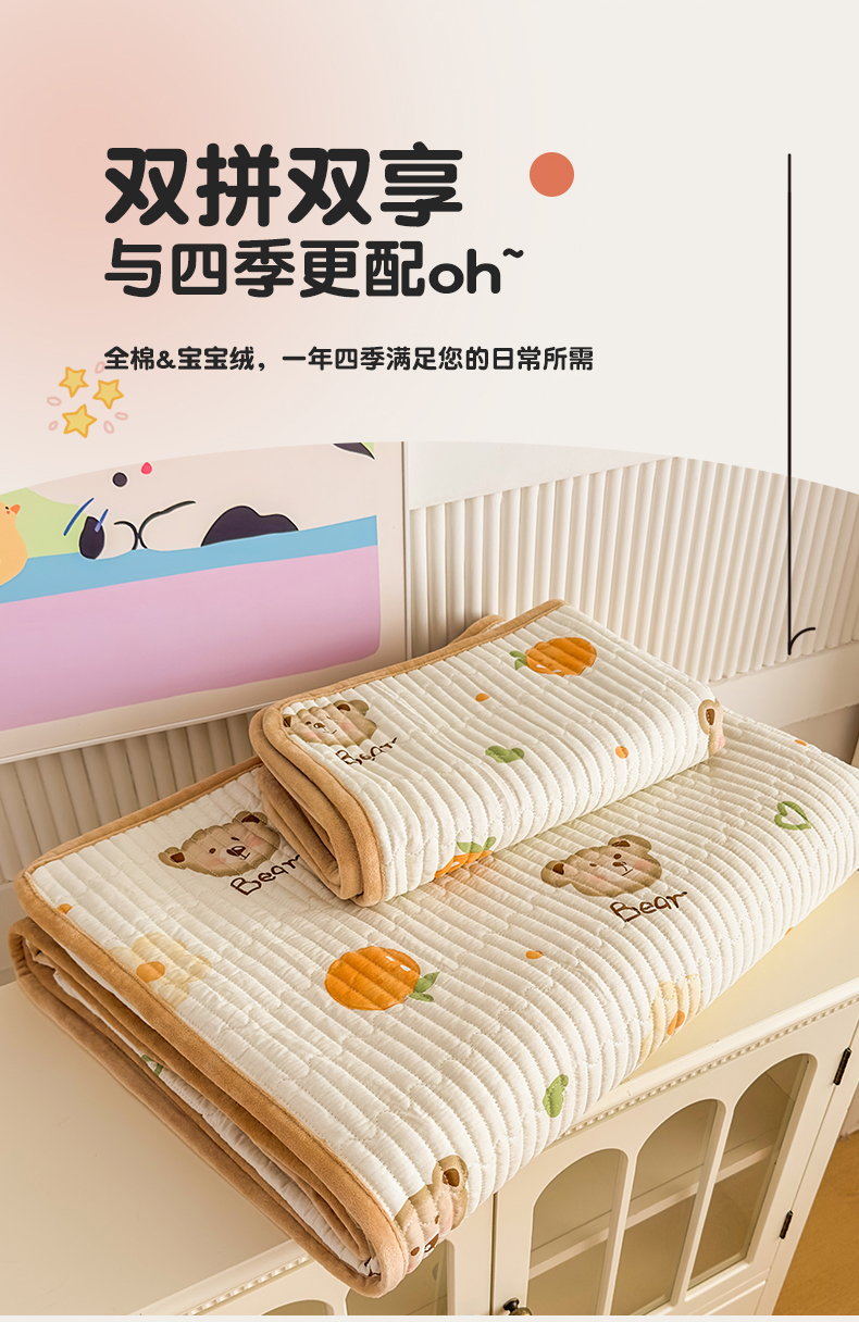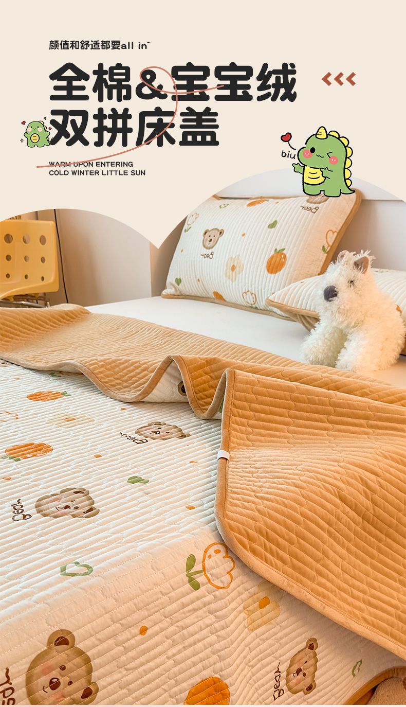 商品名称:(总)恒爱家纺 2025新款全棉宝宝绒双拼床盖三件套