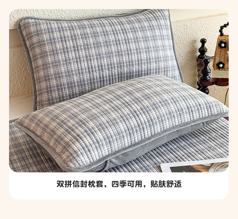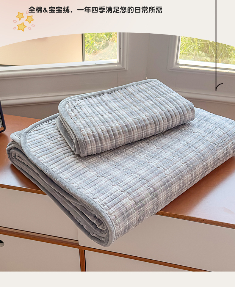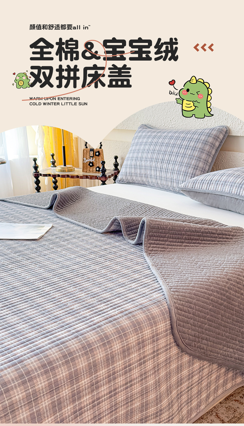 当前位置: 91家纺网 > 商品网购 > 床上用品 > 床盖 > 恒爱家纺 2025新款全棉宝宝绒双拼床盖三件套 灰小格