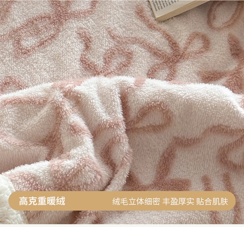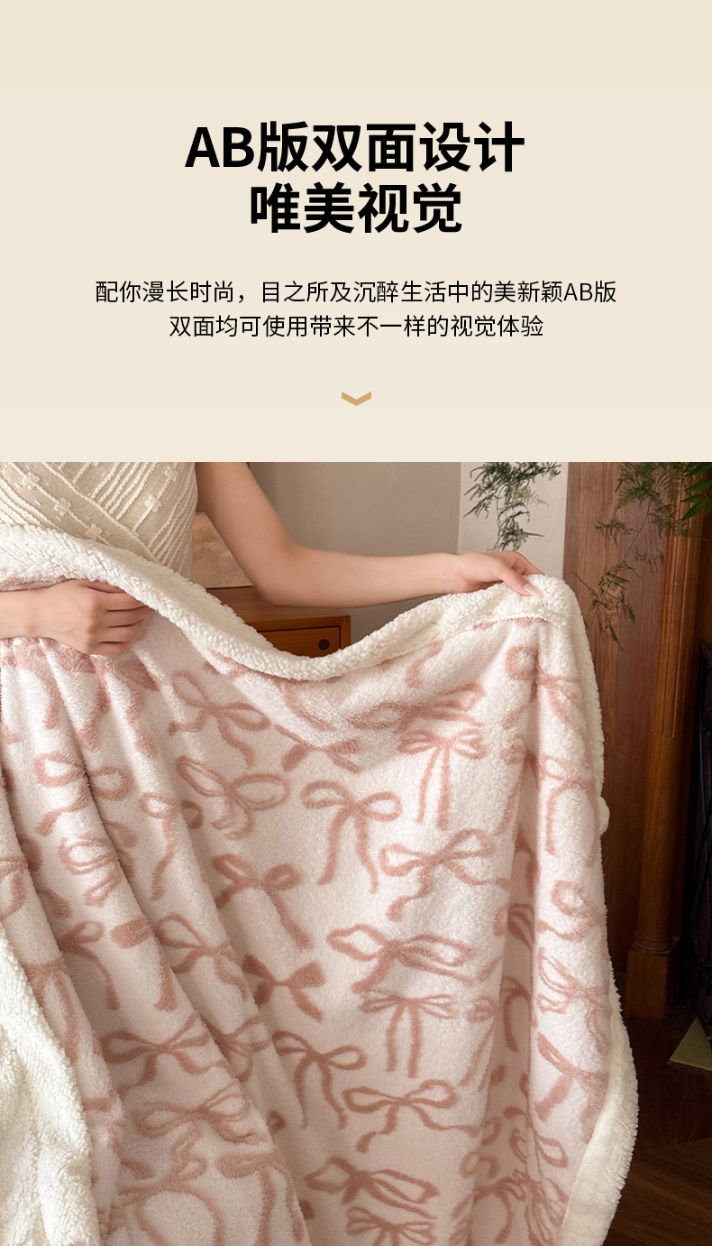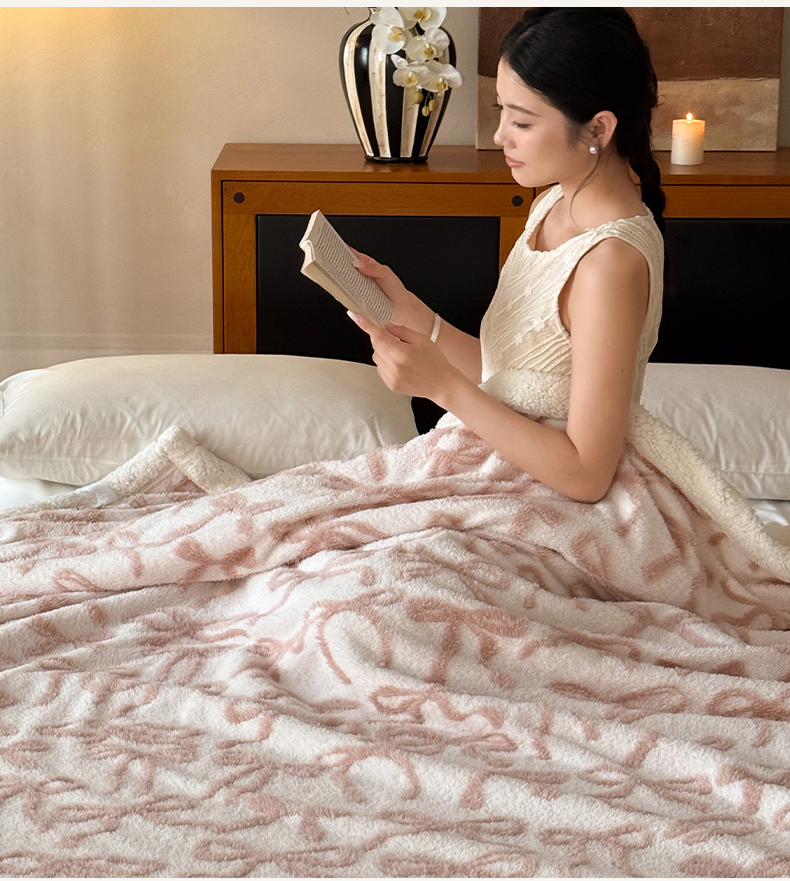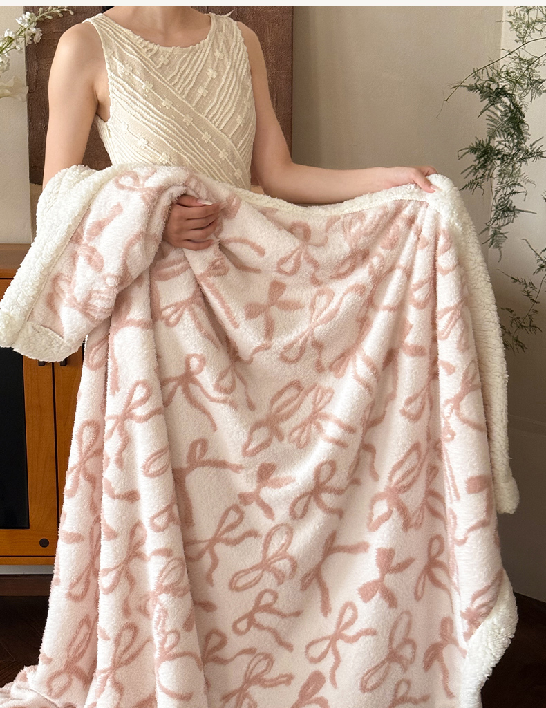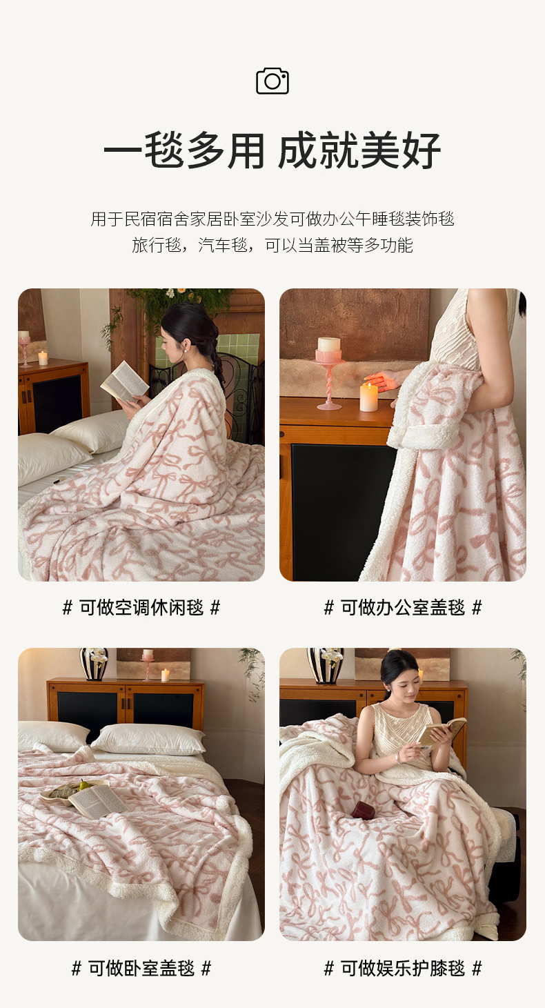 商品名称:云栖家居 2025双层加厚单双人毛毯午休毯立体提花羊羔绒盖毯 蝴蝶结