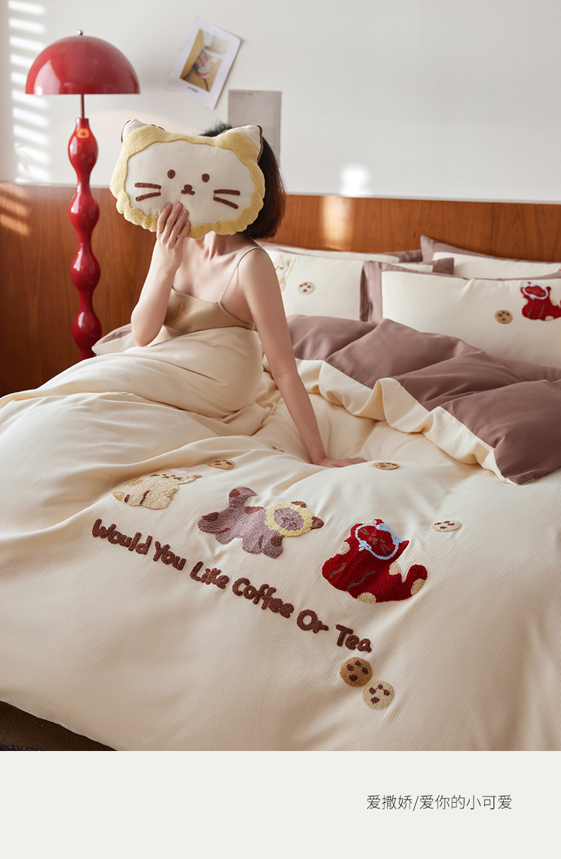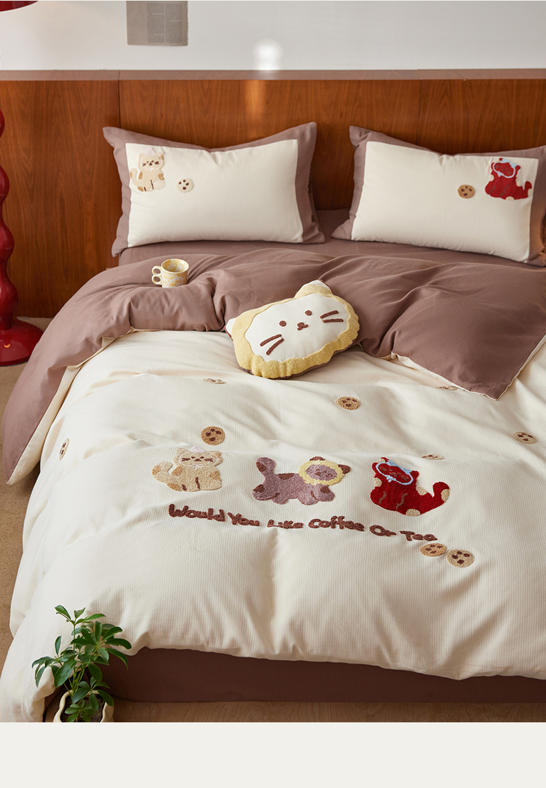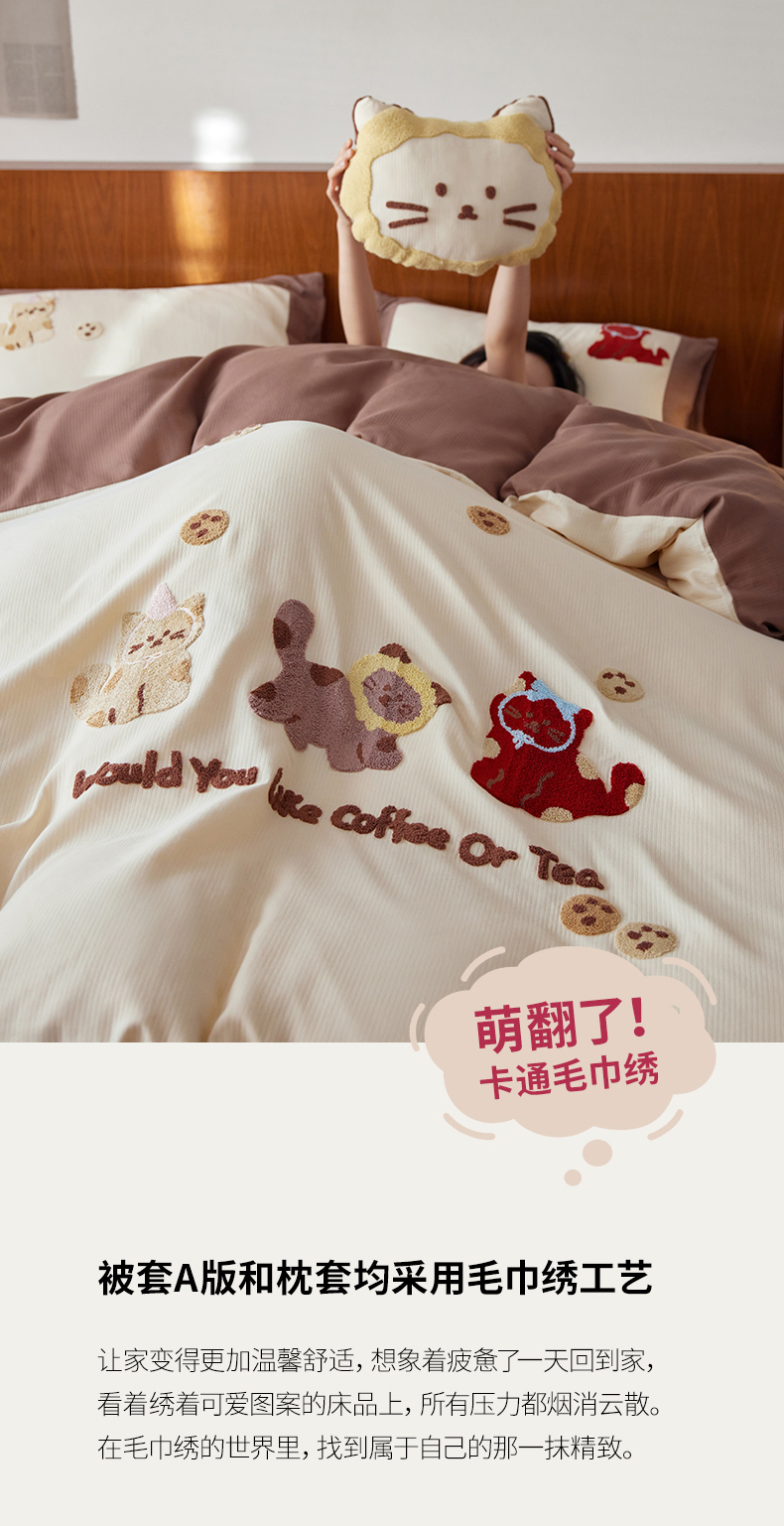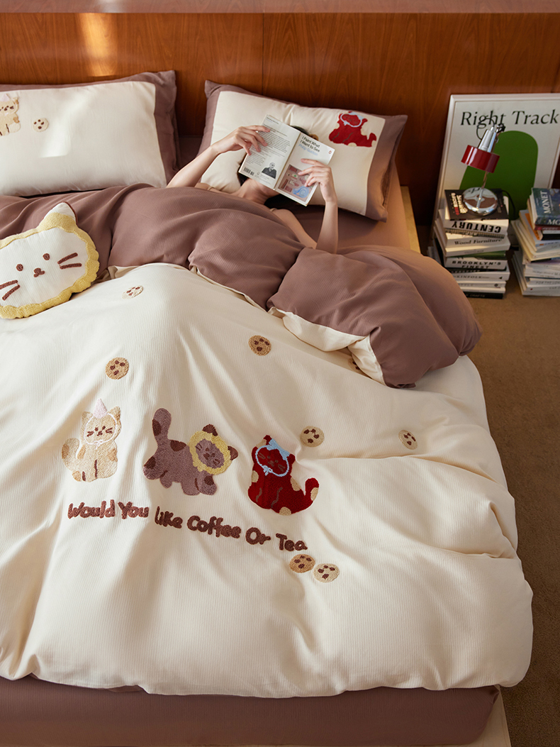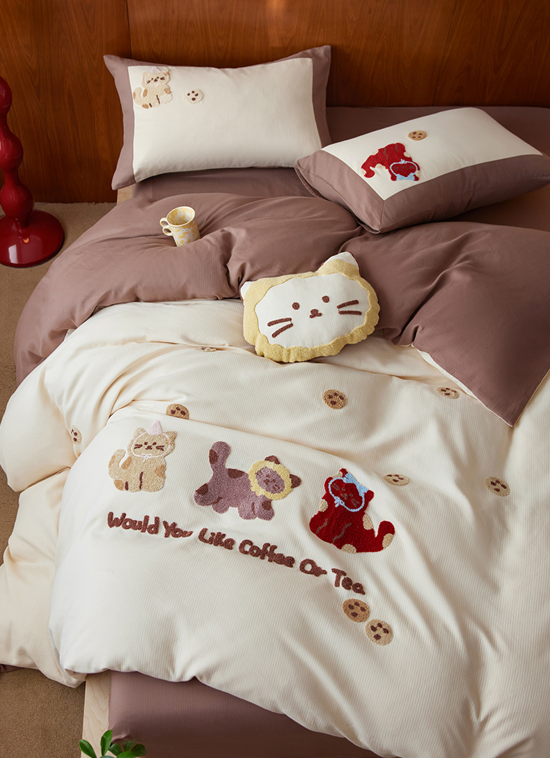 当前位置: 91家纺网 > 商品网购 > 床品套件 > 四件套 > 普通磨毛四件套 > 风向标家纺 2025新款透气软织提花磨毛卡通毛巾绣四件套-风格一 曲奇猫
