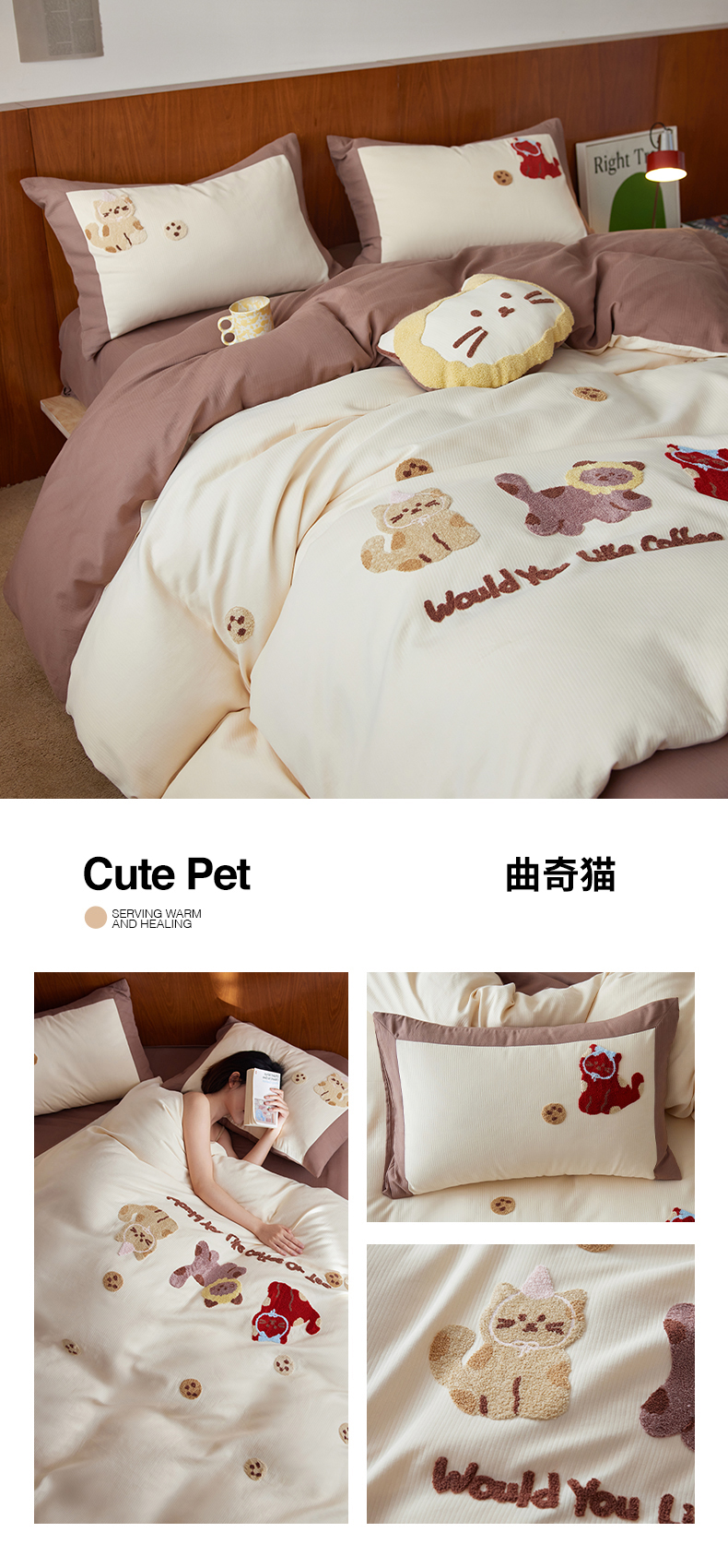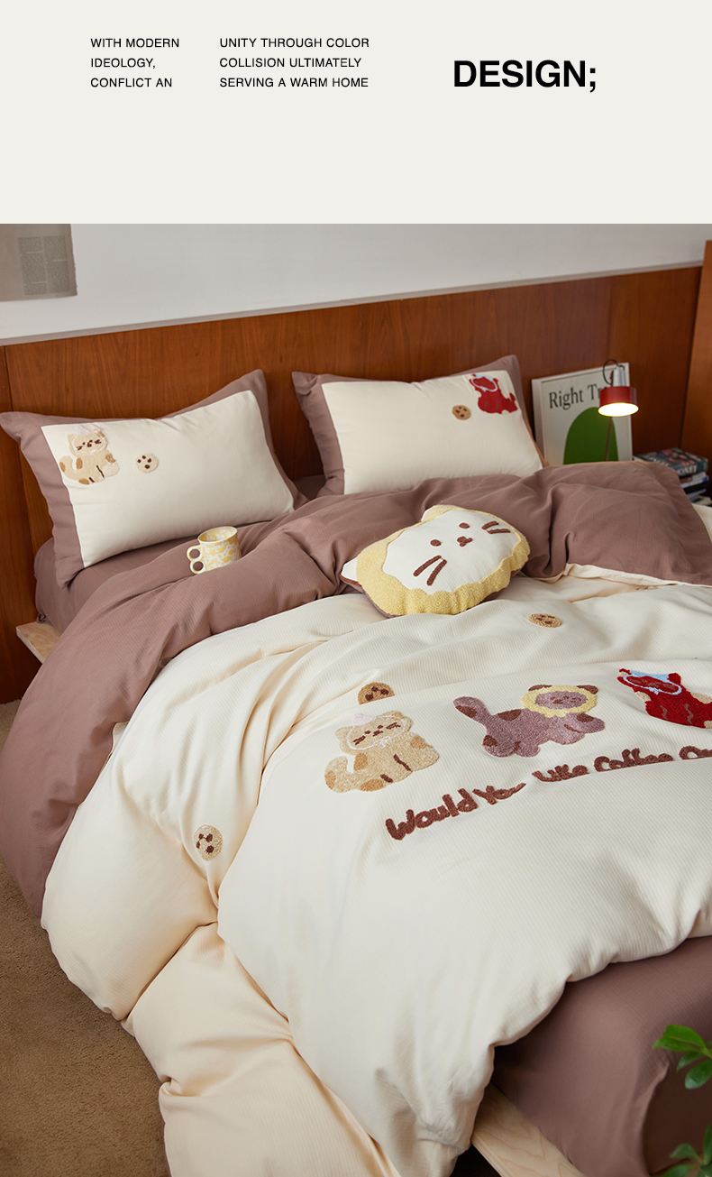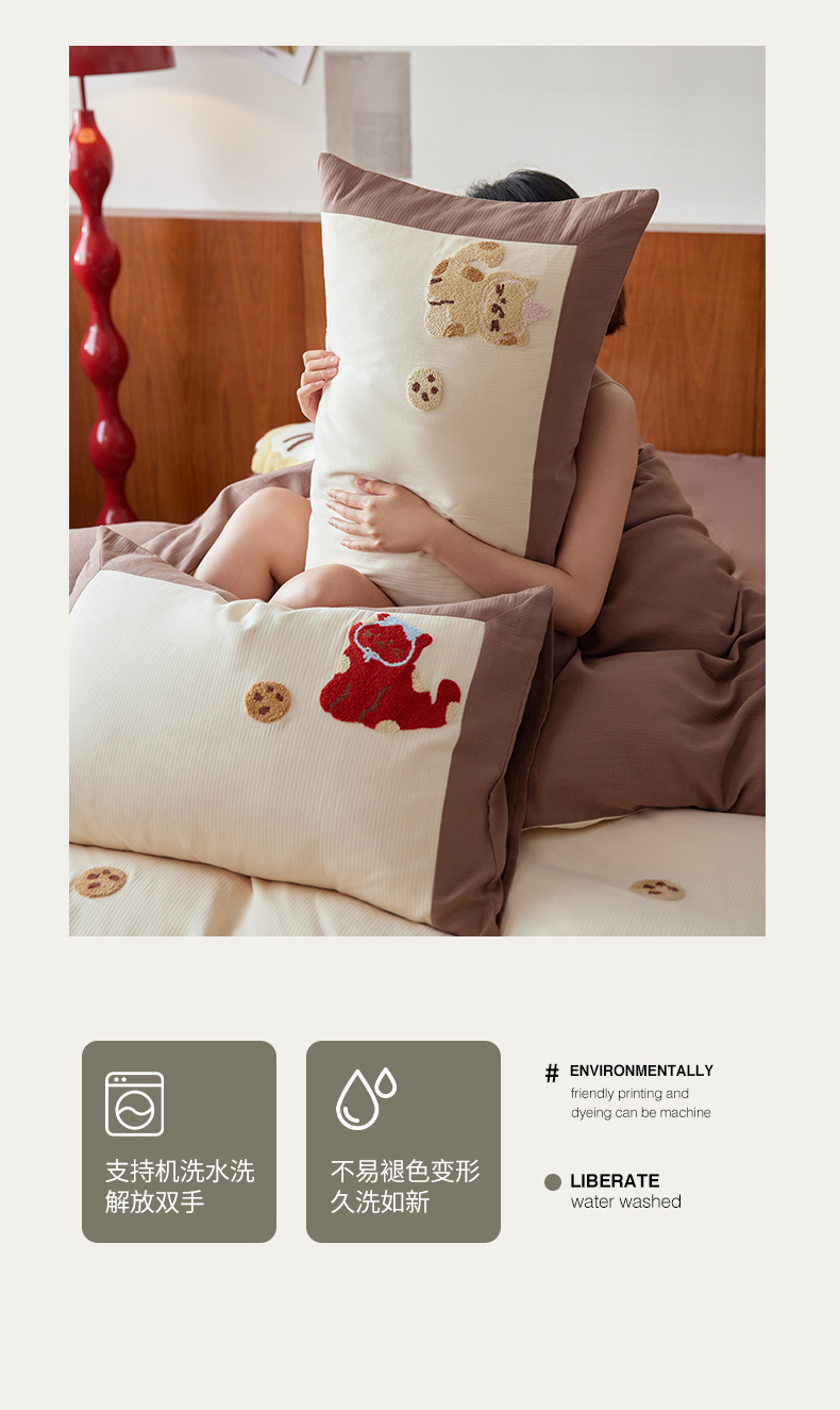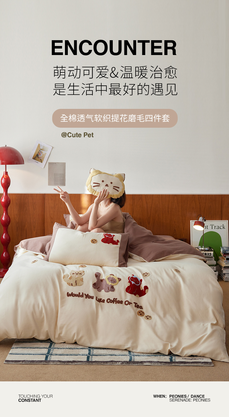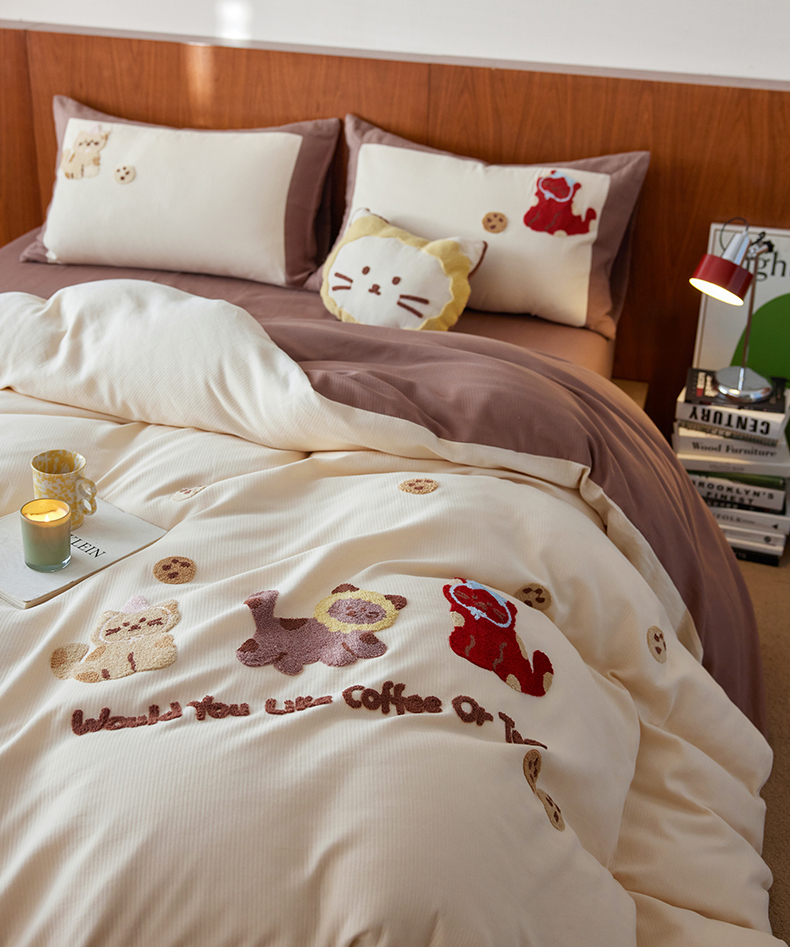 当前位置: 91家纺网 > 商品网购 > 床品套件 > 四件套 > 普通磨毛四件套 > 风向标家纺 2025新款透气软织提花磨毛卡通毛巾绣四件套-风格一 曲奇猫